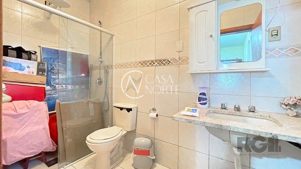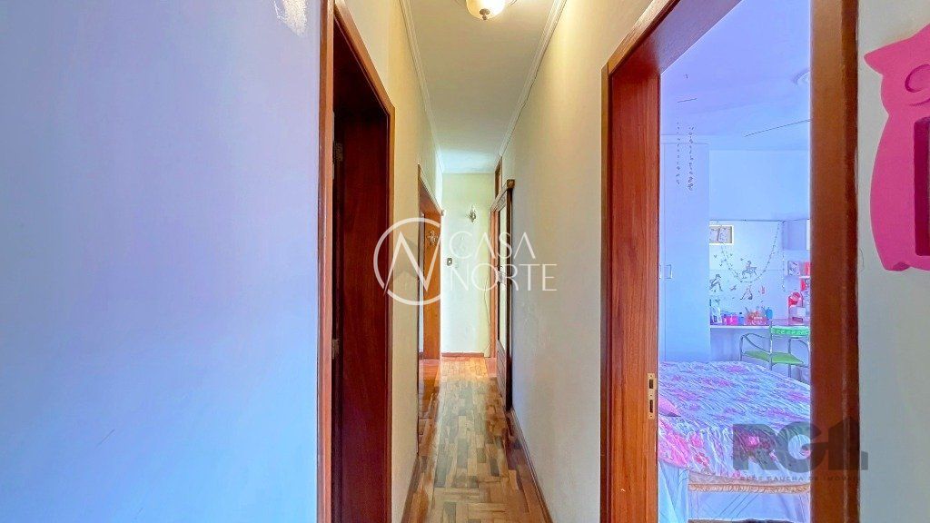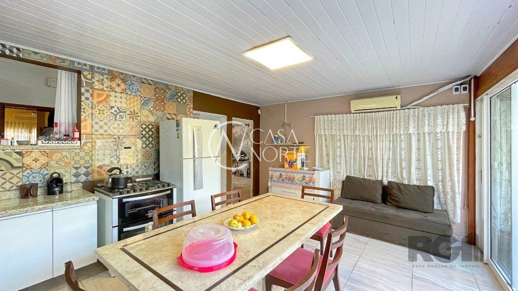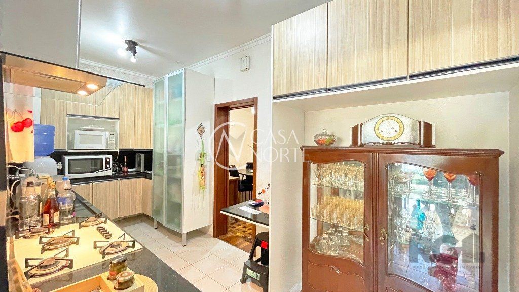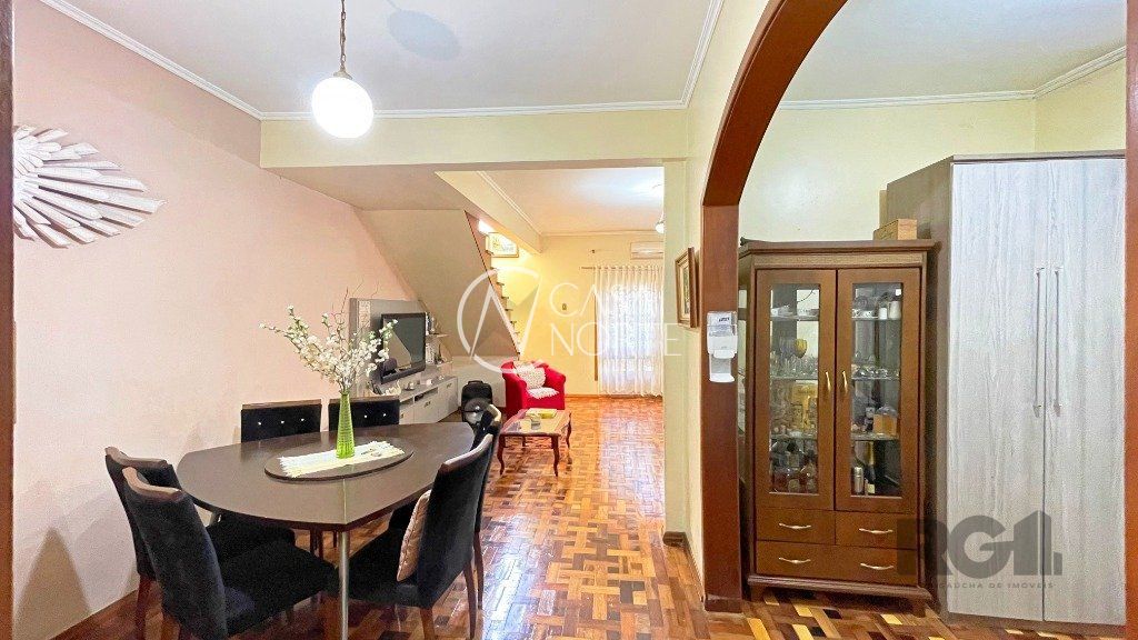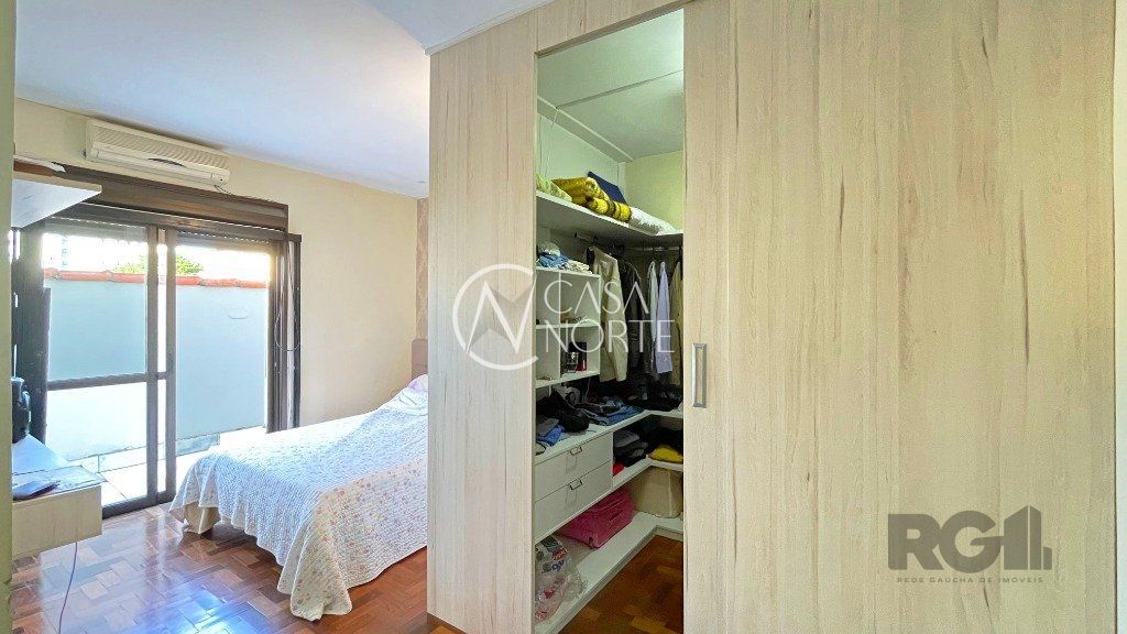 Na parte inferior, há um living com dois ambientes, copa-cozinha, lavabo, 1 suíte com sacada e closet e uma edícula com banheiro social, que pode ser utilizada como escritório. O pátio conta com churrasqueira e piscina. Na parte superior, encontram-se 3 dormitórios, banheiro social e sala de TV.