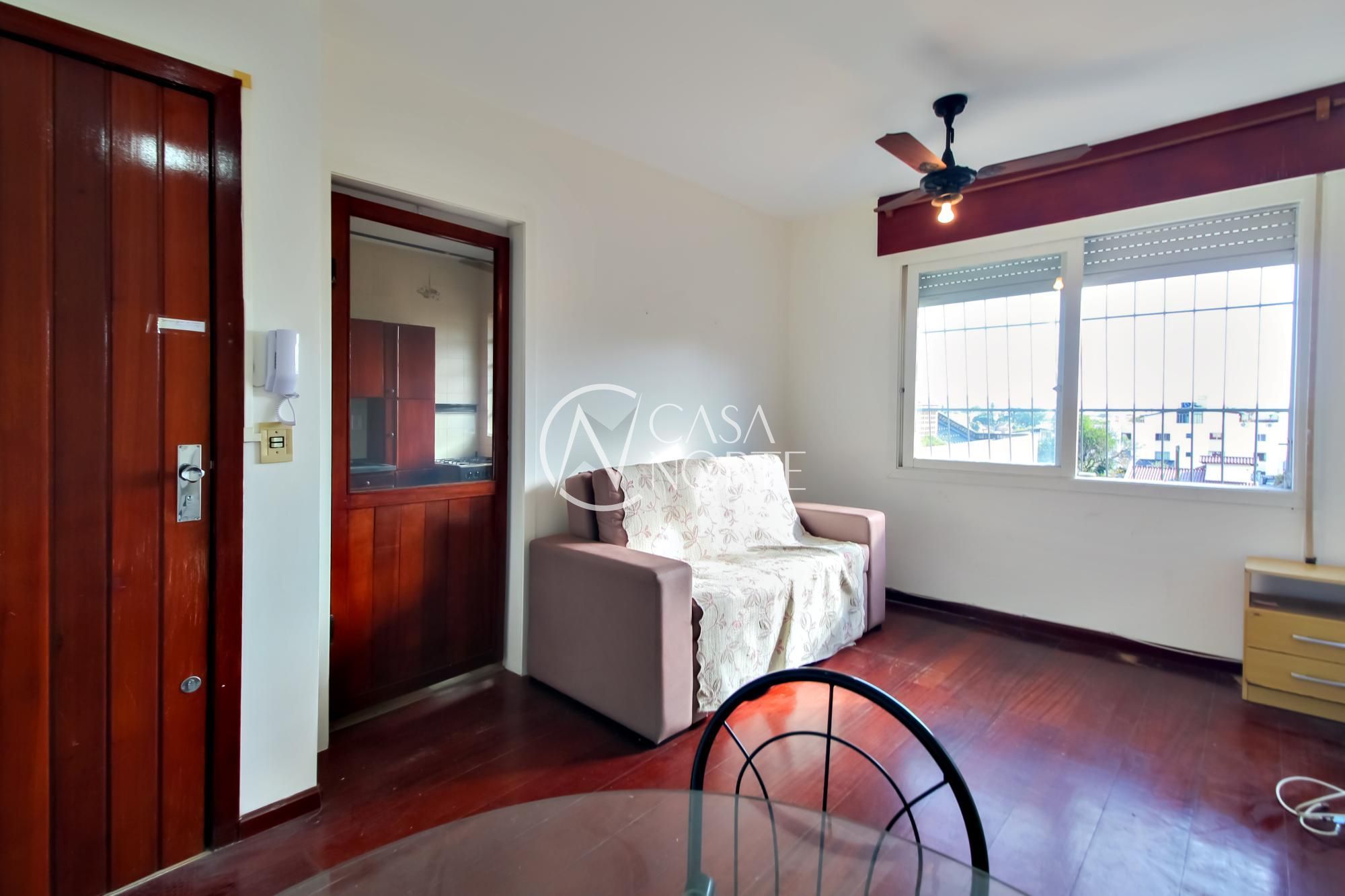 Excelente apartamento semi mobiliado, com 1 dormitório, estilo suíte, living amplo, cozinha, área de serviço separada. Apenas dois lances de escadas. Condomínio enxuto, com porteiro eletrônico e faxineira. Possibilidade de locar garagem no condomínio! Ótima localização! Vale a pena conferir!