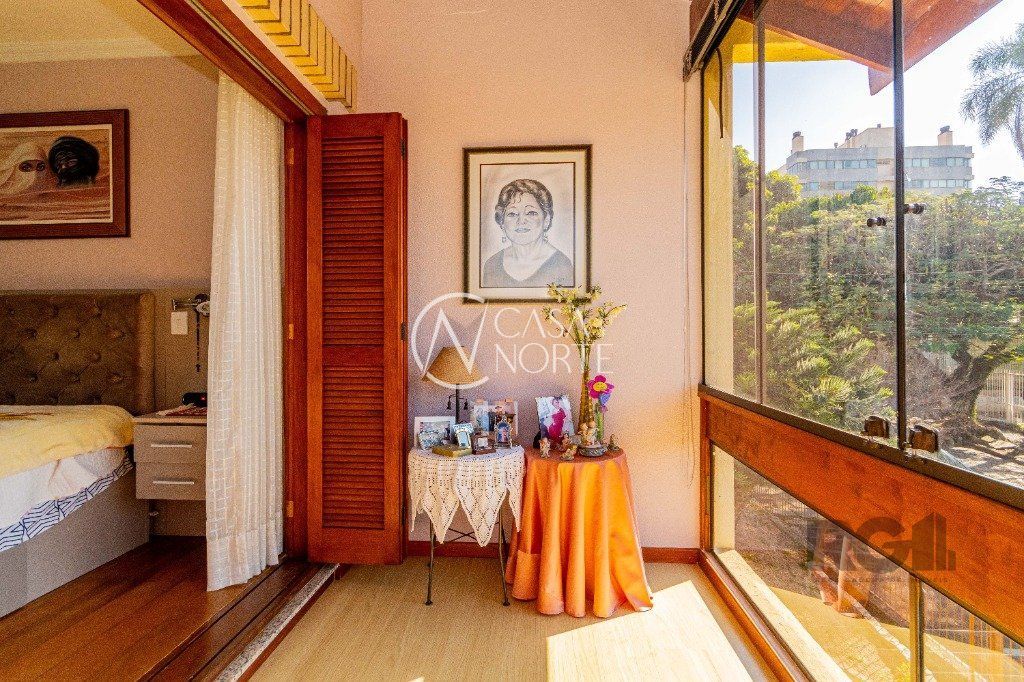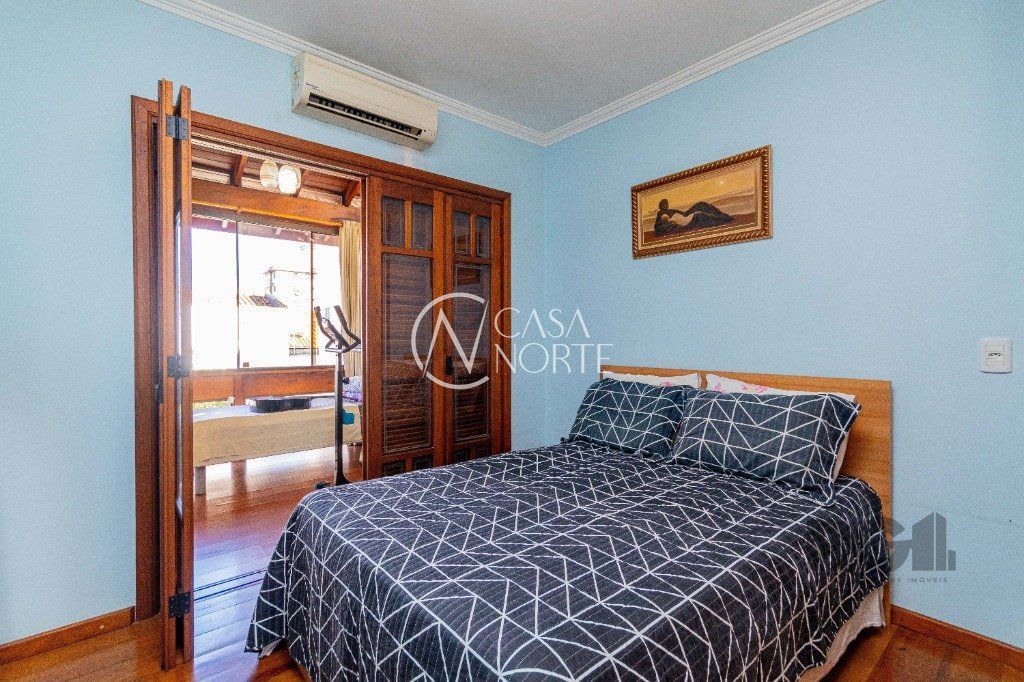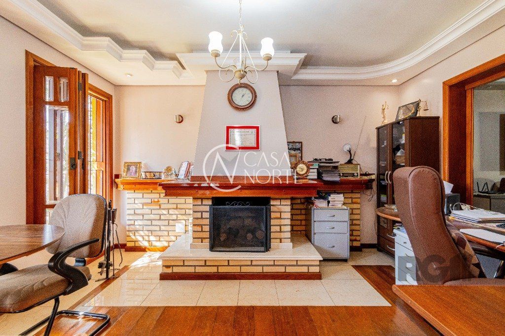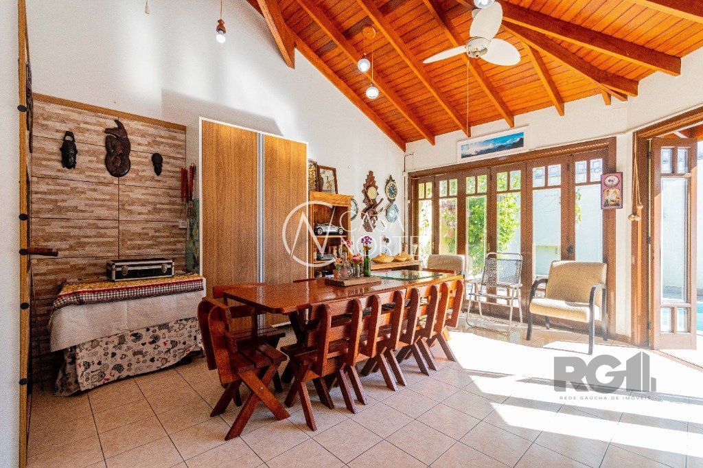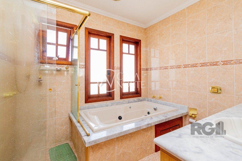 Excelente casa de alvenaria com jardim, com 304 m², possui 2 quartos com suite master, sacada, sala de estar com vista para a piscina, quarto de visitas, quarto solteiro, banheiro social já no Piso Inferior conta com Sala com lareira, Sala de TV, Lavabo, Sala de jantar, Cozinha, Pátio, Lavanderia e sistema de gás central, churrasqueira, Piscina e Garagem para três carros.