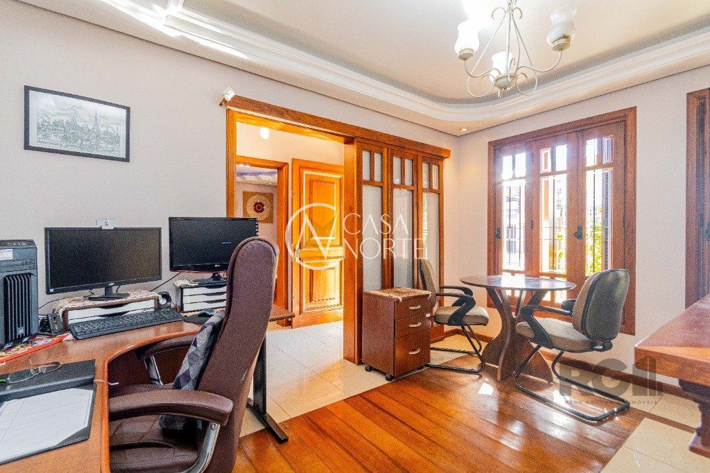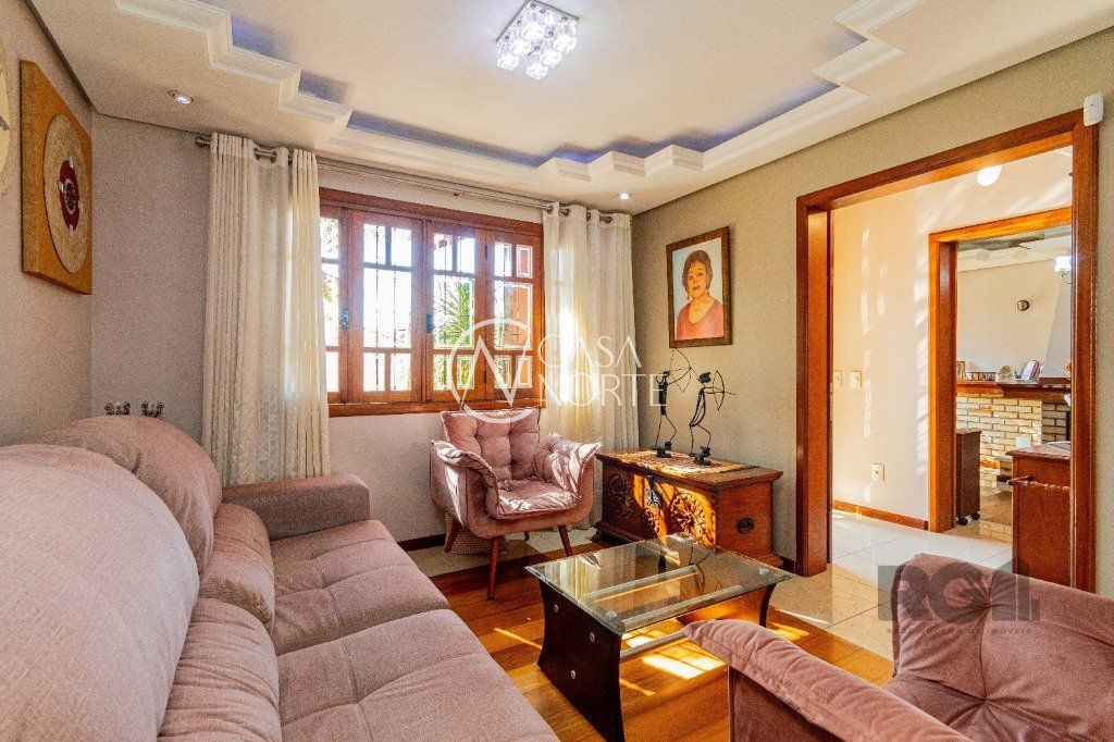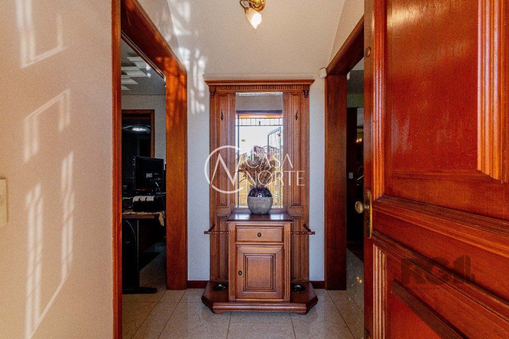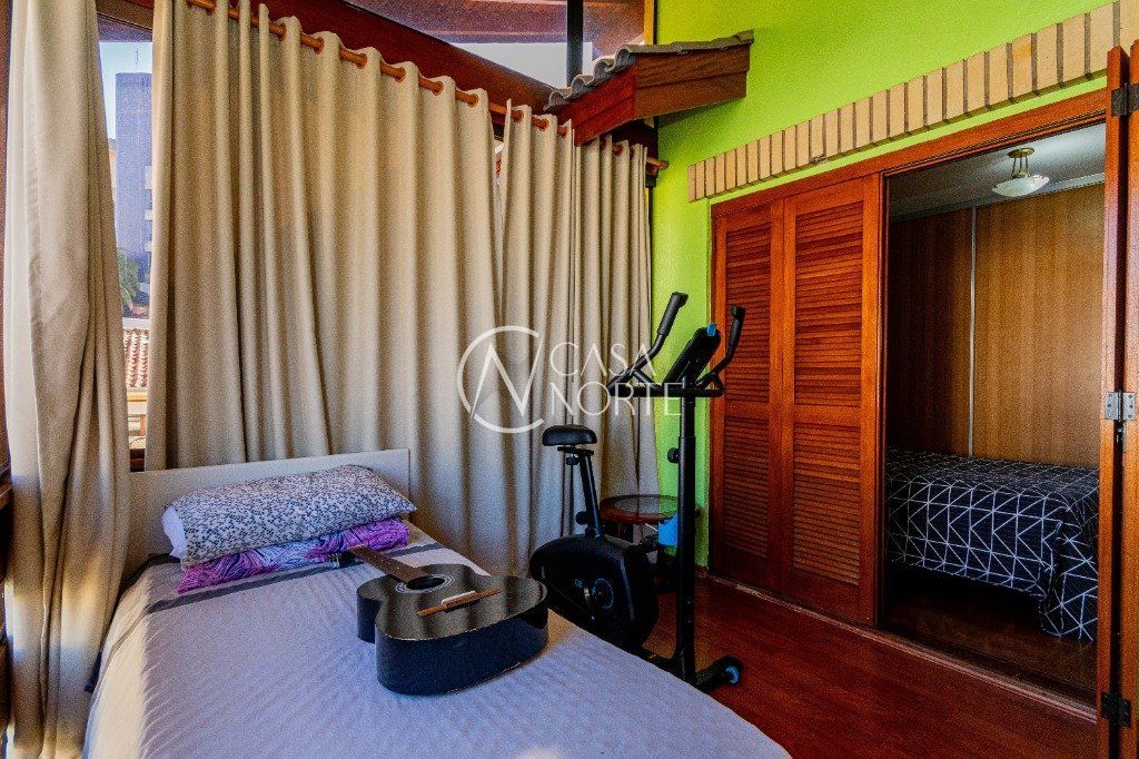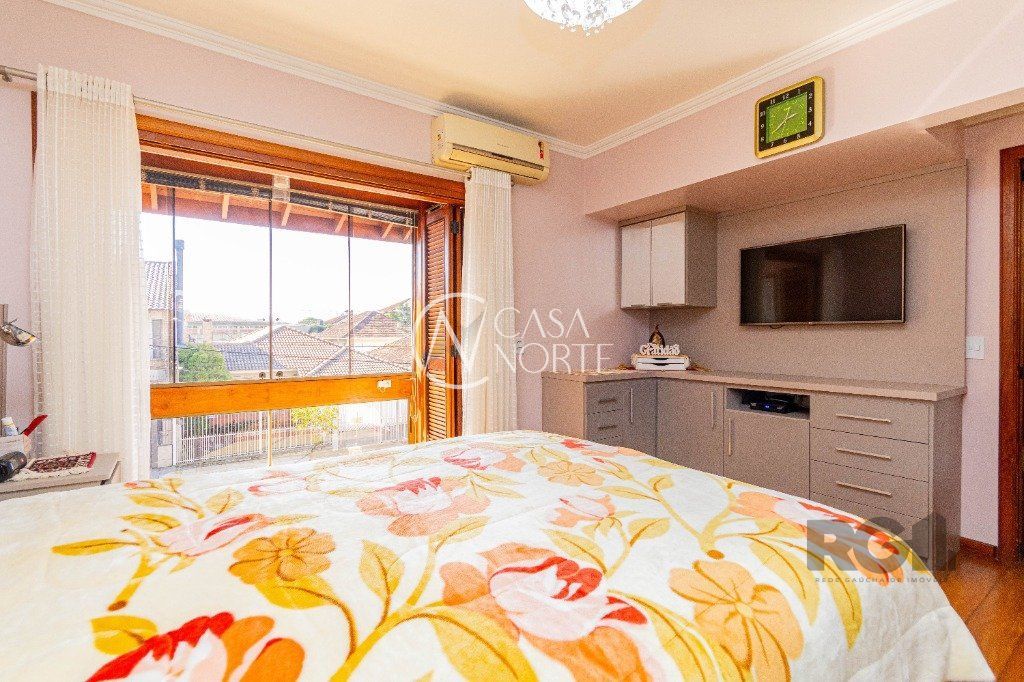 Excelente casa de alvenaria com jardim, com 304 m², possui 2 quartos com suite master, sacada, sala de estar com vista para a piscina, quarto de visitas, quarto solteiro, banheiro social já no Piso Inferior conta com Sala com lareira, Sala de TV, Lavabo, Sala de jantar, Cozinha, Pátio, Lavanderia e sistema de gás central, churrasqueira, Piscina e Garagem para três carros.