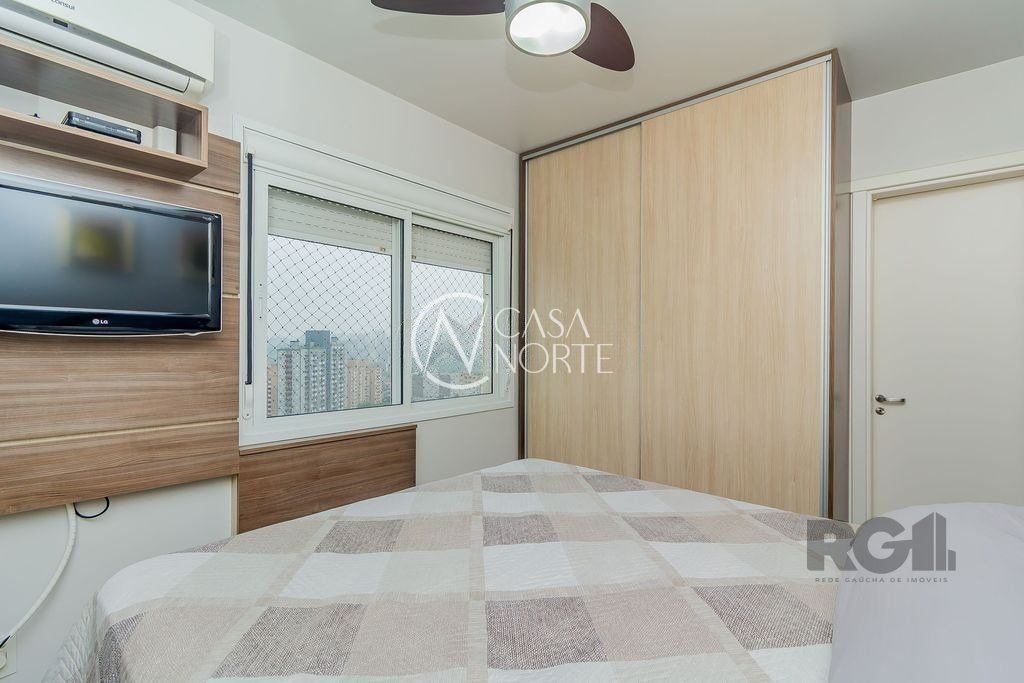 Ótimo apartamento de 75m² no bairro Partenon! O imóvel é composto por espaçoso living para dois ambientes, 3 dormitórios sendo 1 suíte, banheiro social, cozinha americana com churrasqueira, área de serviço separada e 2 vagas de garagem cobertas escrituradas (box duplo). Andar alto com ótima iluminação e ventilação. Ficam no imóvel todos os móveis fixos, fogão, ventiladores de teto e ar condicionado. O condomínio conta com infraestrutura de lazer e segurança completos, dispondo de portaria 24h, elevador, salão de festas, espaço fitness, piscinas, market, quadra esportiva, brinquedoteca e playground.