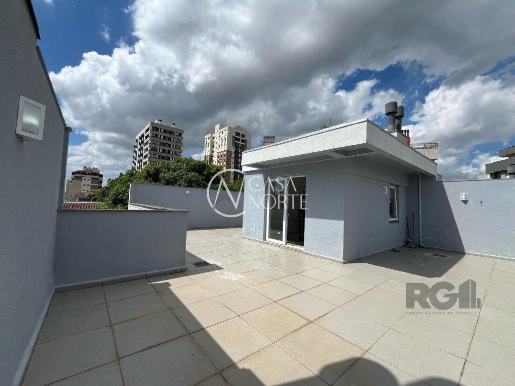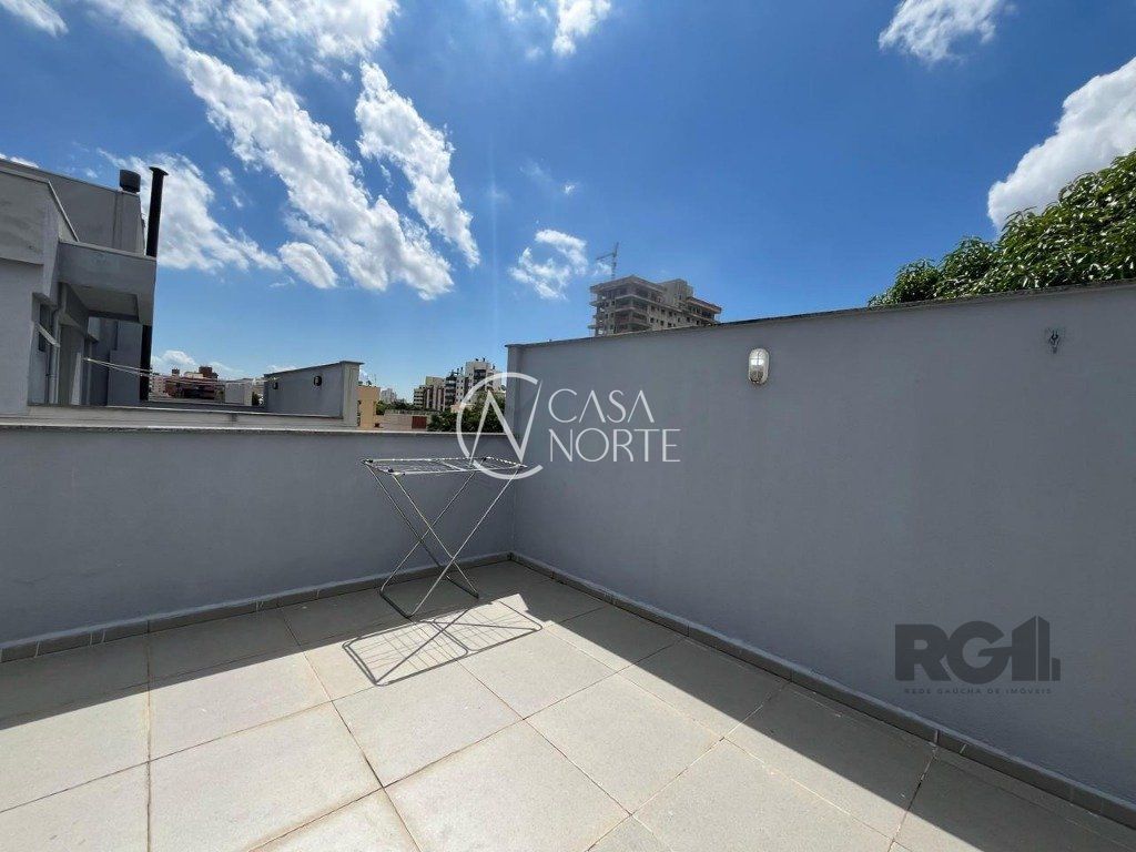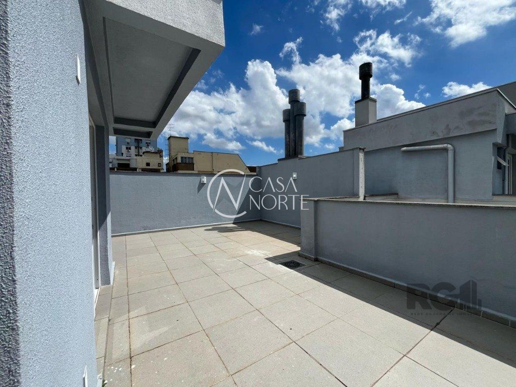 Cobertura na Barão de Teffe, com cozinha, banheiro, área de serviço separada, duas churrasqueiras (na sacada e no terraço), 2 quartos, 1 suíte, predio com elevador, banheiro, living com dois ambientes.