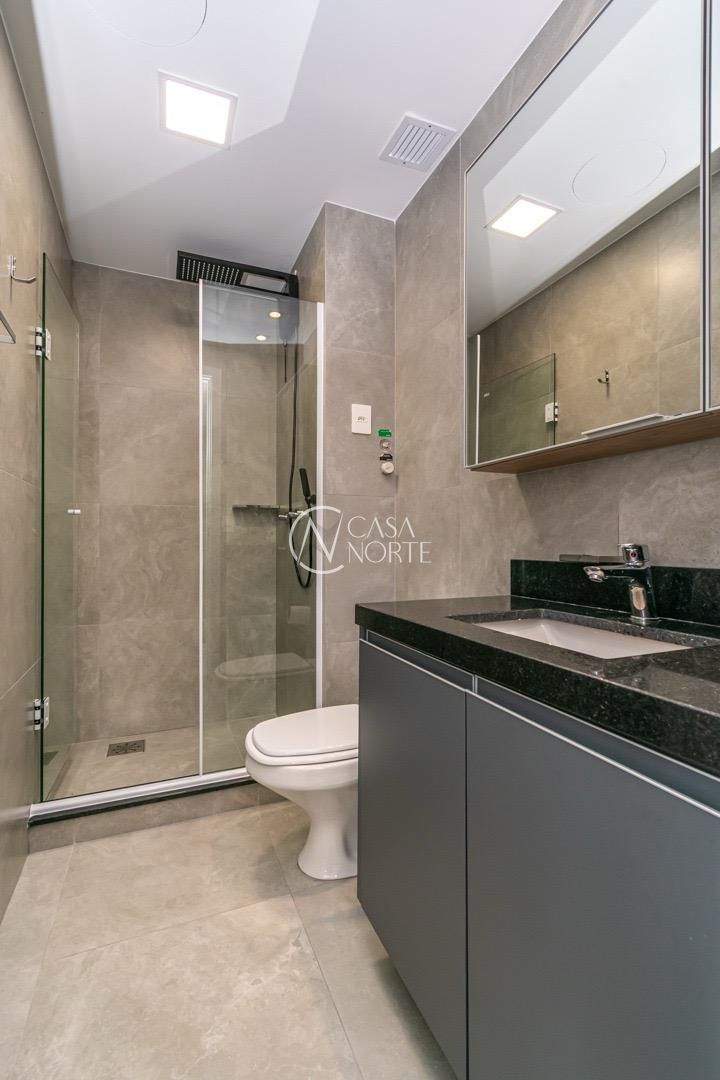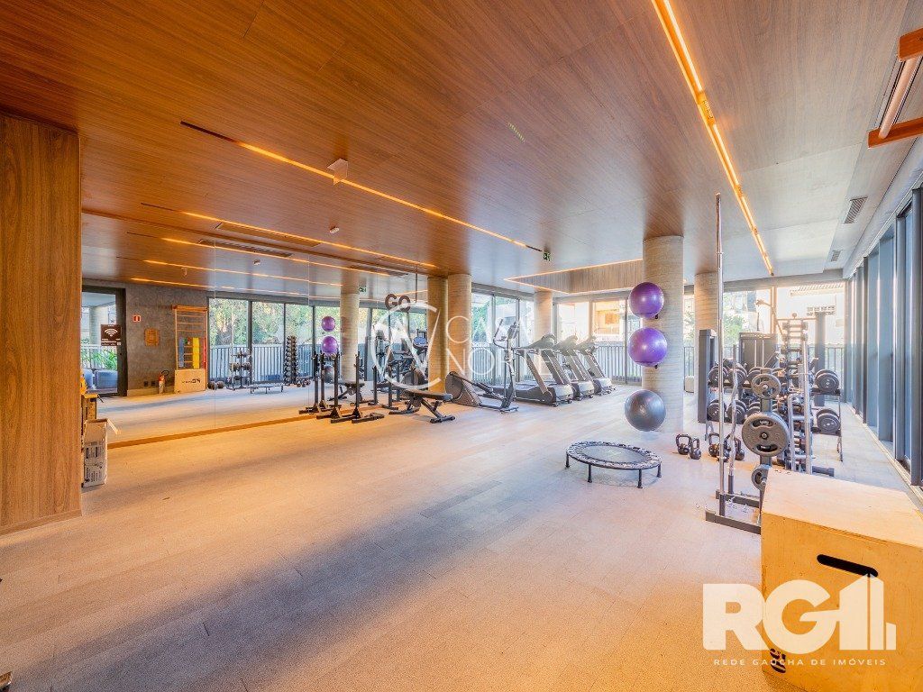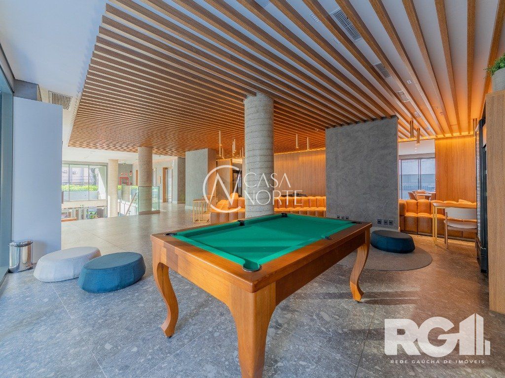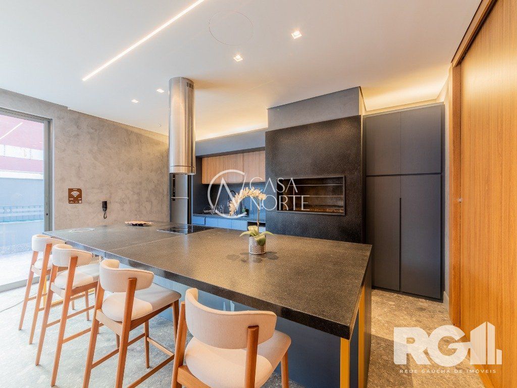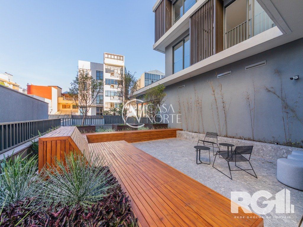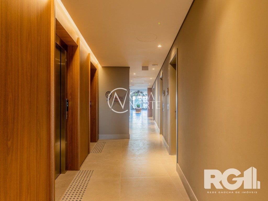 Loft de alto padrão construtivo no bairro Moinhos de Vento, planta de 30 m2 privativos com porcelanato, forro em gesso e aberturas em alumínio com vidros duplos.