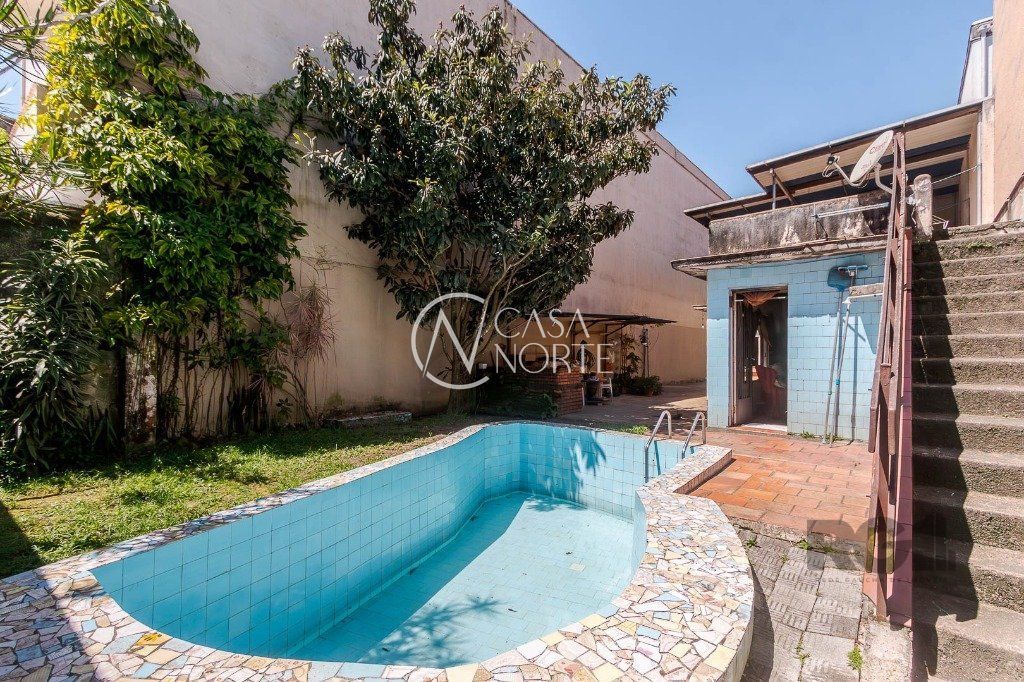 Casa com 3 dormitórios, 2 banheiros, ampla sala de estar, gabinete e cozinha. Área construída de 230m², ideal para moradia ou para investimento em construção de edifício residencial ou comercial.