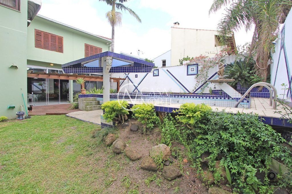Ampla casa localizada no bairro Partenon, composta por 5 suítes sendo uma master com lareira, hidromassagem e closet, living principal para três ambientes, jardim de inverno, lavabo, sala de jantar integrada a cozinha, área de serviço, dependência com banheiro auxiliar e espaçoso salão de festas. Possui amplo e aconchegante pátio com deck, piscina, churrasqueira e varanda. Conta ainda com garagem coberta para 4 carros. Semi mobiliado, reformado, com ótima iluminação e ventilação.