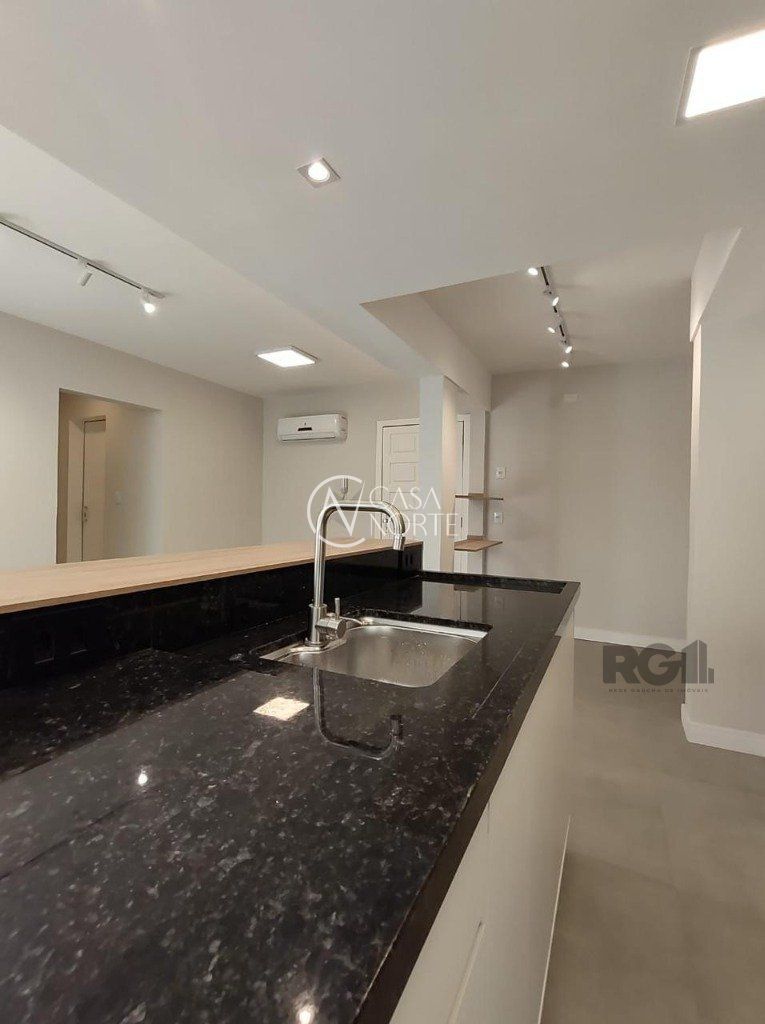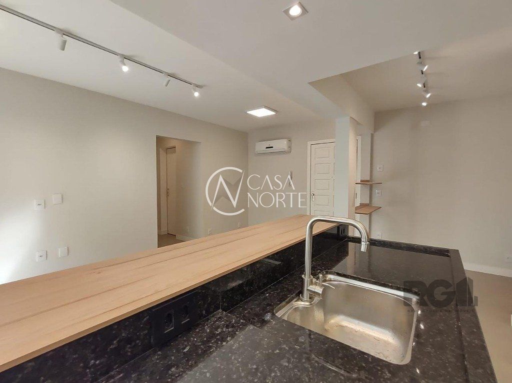 Impecável apartamento de 2 dormitórios no bairro Petrópolis! São 67,40m² distribuídos em living para dois ambientes integrado com a cozinha americana, lavabo, 2 dormitórios, banheiro social, área de serviço e 1 vaga de garagem coberta escriturada. Recém reformado, com elétrica e hidráulica novas, possui espera para SPLIT nos dormitórios, móveis sob medida na cozinha, área de serviço, banheiro e lavabo. Fundos/lateral, silencioso, orientação solar norte na sala e cozinha e leste nos dormitórios.