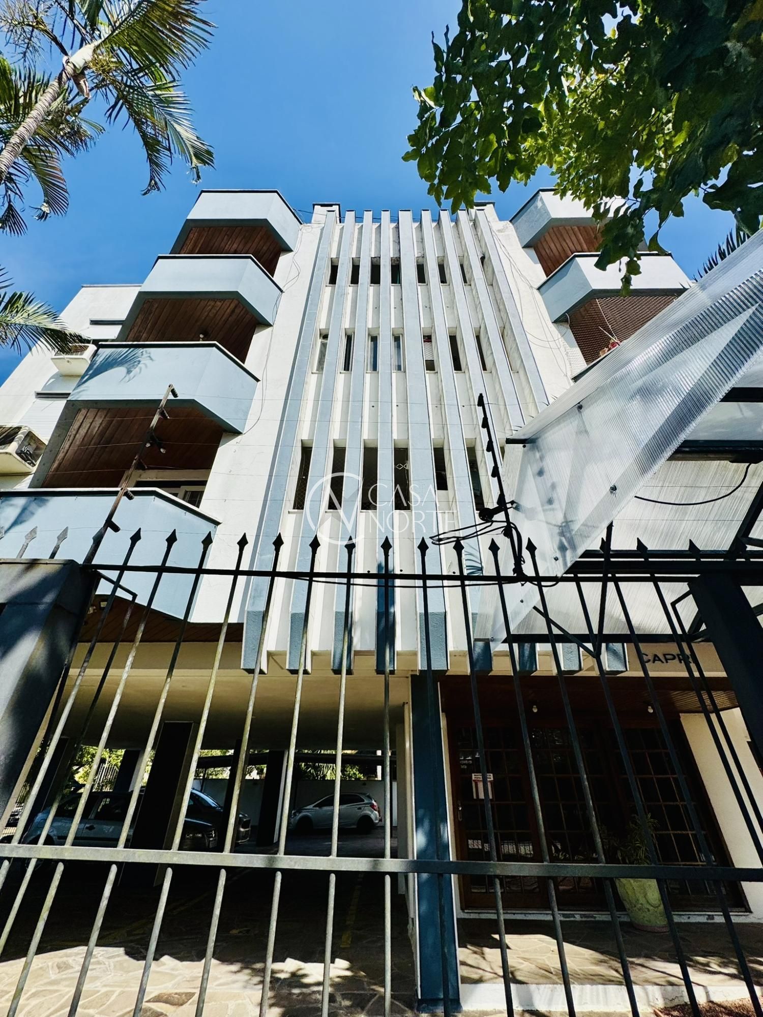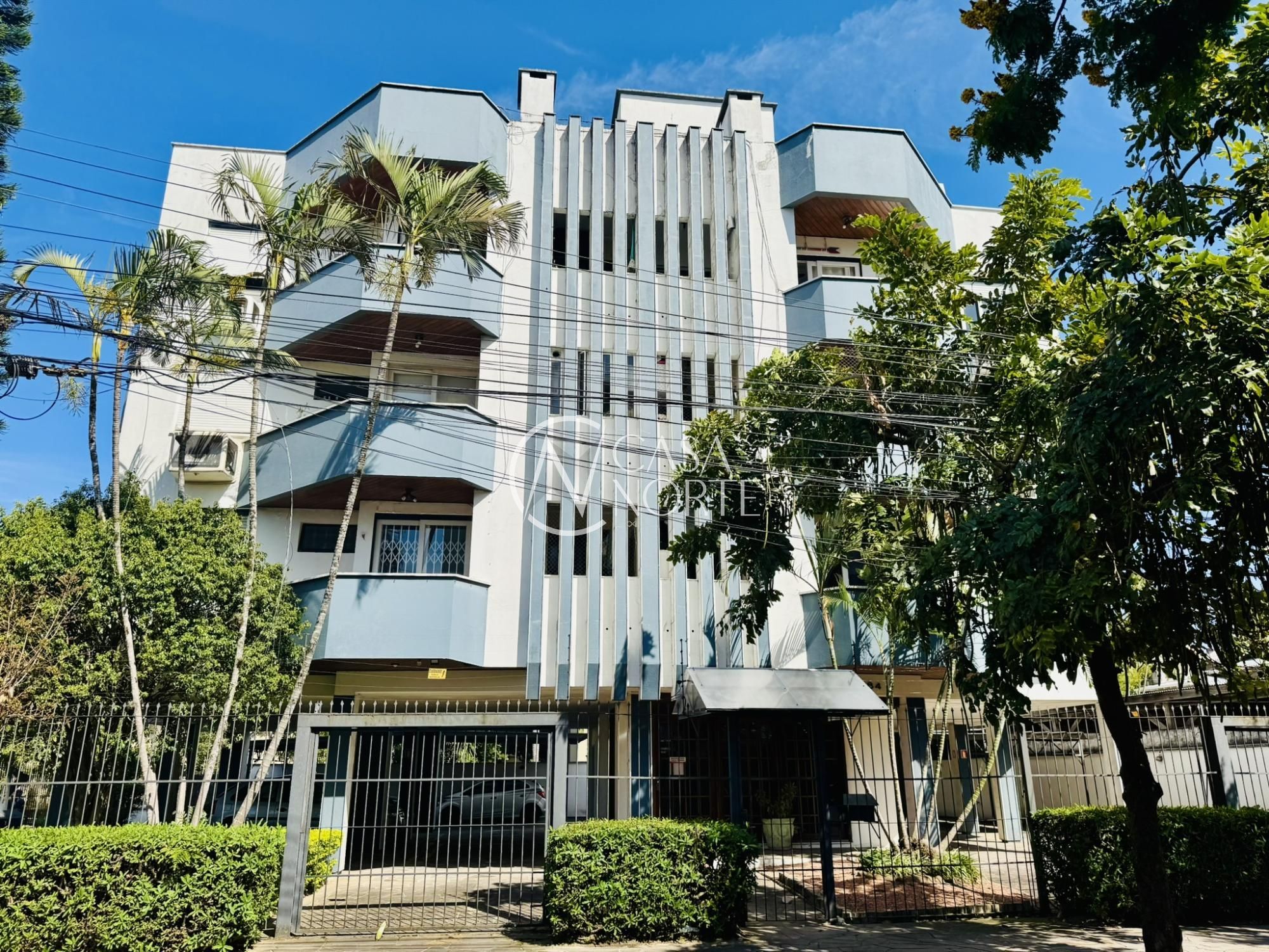 O edifício, localizado em esquina e amplo terreno, oferece:
