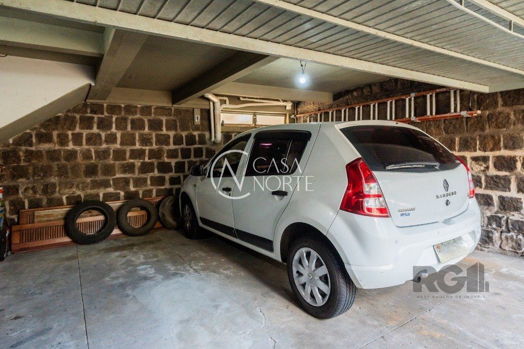 O pátio é arborizado, com árvores frutíferas, salão com churrasqueira e lavanderia integrada. Garagem para dois carros, além de vaga externa para mais um.
