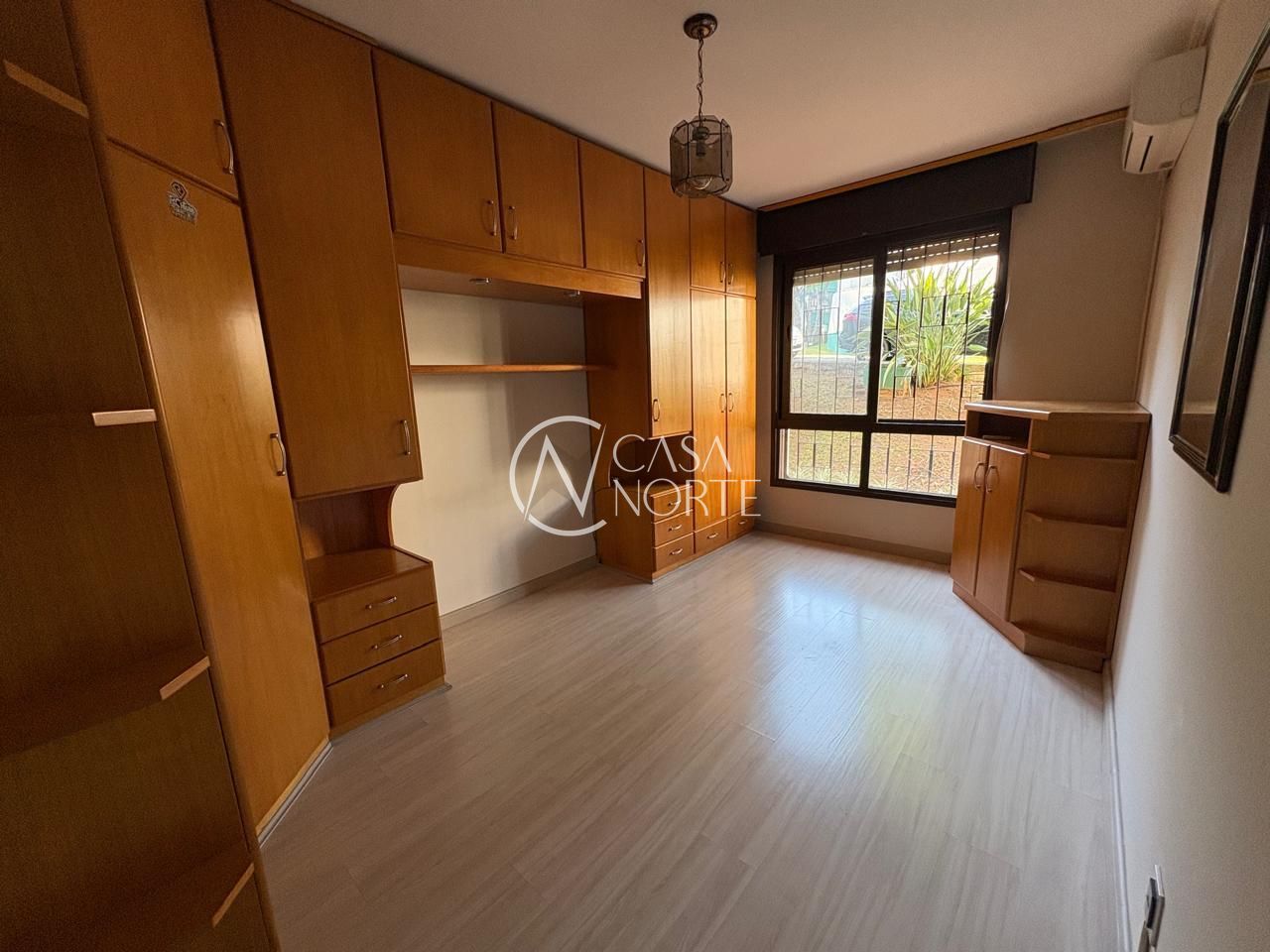 * Dormitório casal ( Guarda roupa planejado em madeira, balcão, ar condicionado)