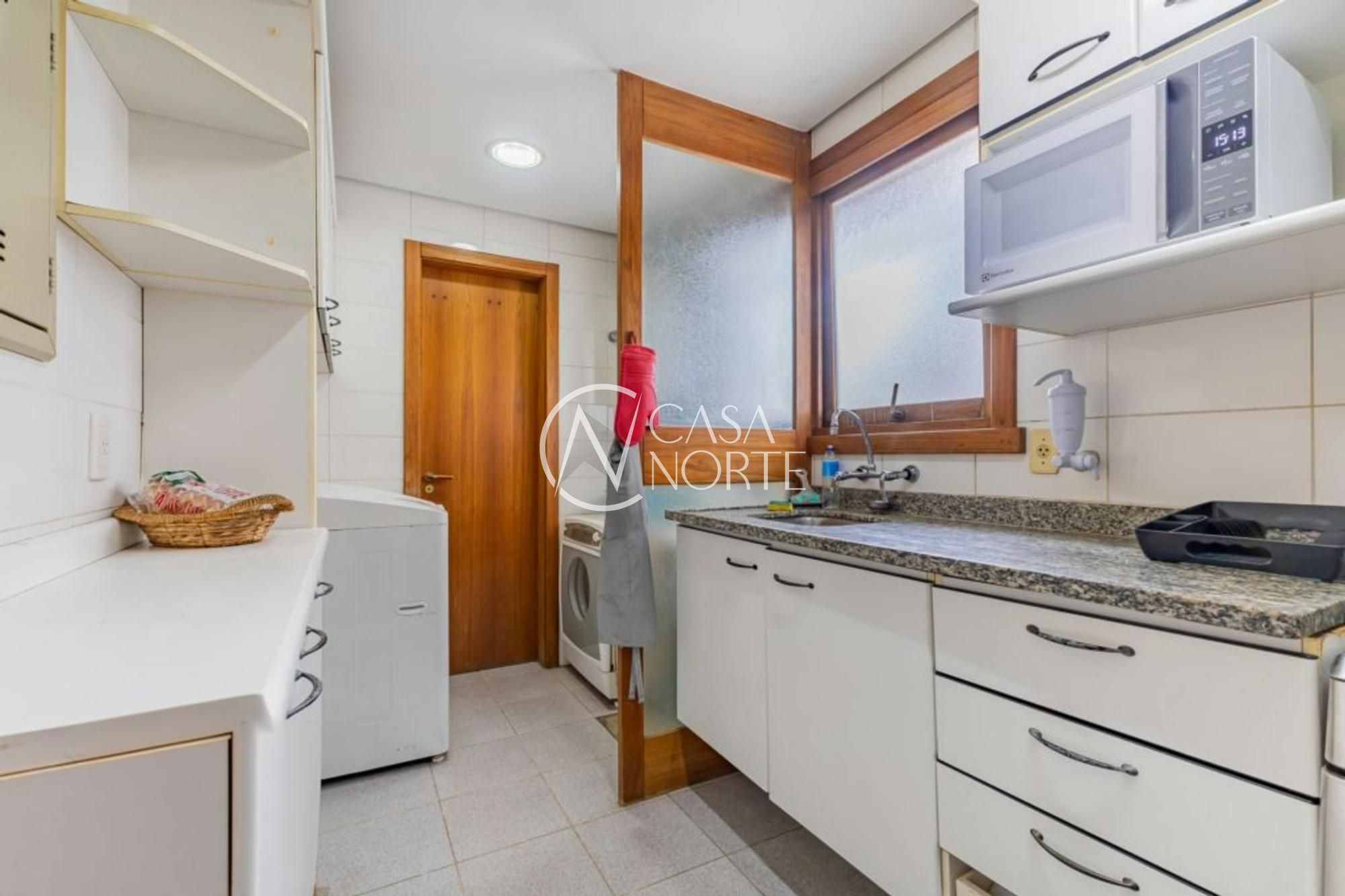 Cozinha planejada, espaçosa e ventilada. Área de serviço individual e ensolarada.