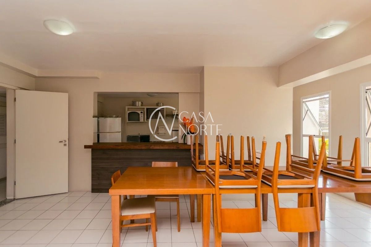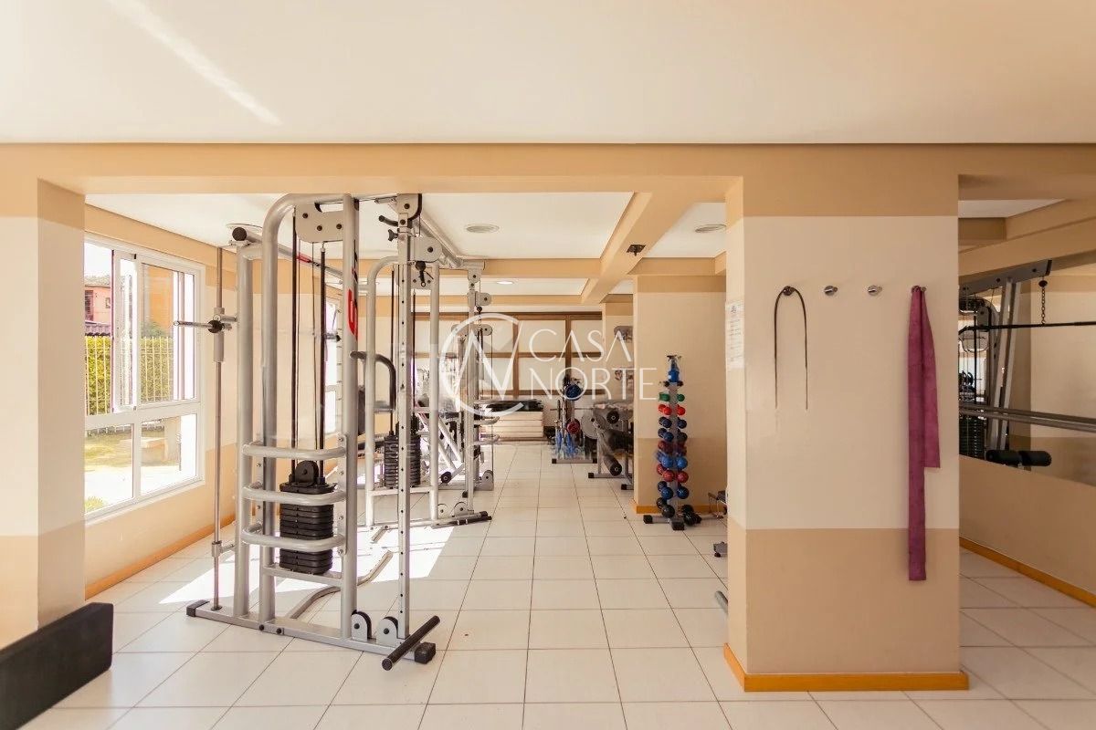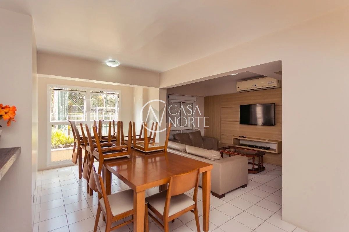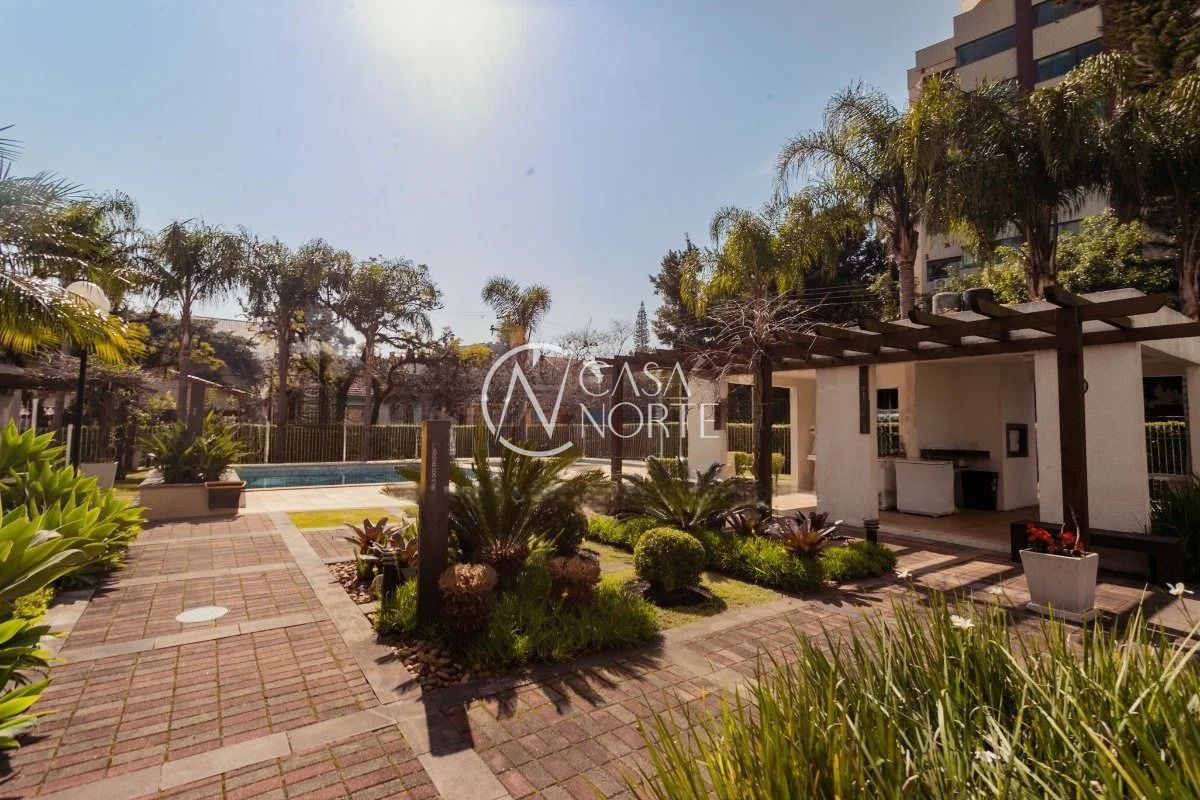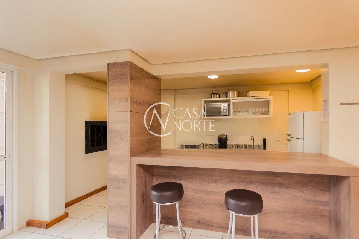 O imóvel conta com três dormitórios, sendo uma suíte, living amplo com sacada e churrasqueira, cozinha americana integrada, banheiro social e área de serviço. Possui água quente na cozinha e nos banheiros, além de uma vaga de garagem coberta e escriturada.