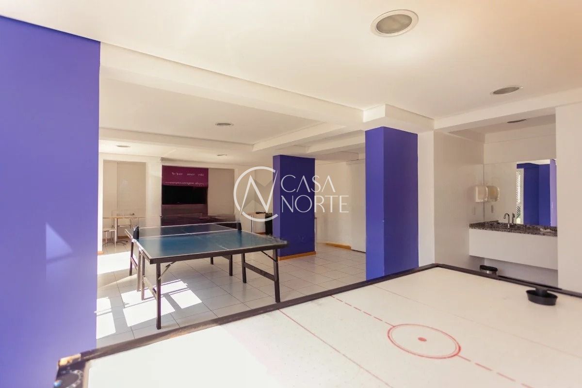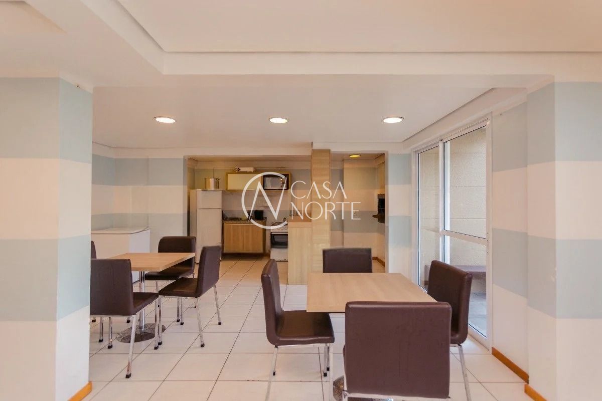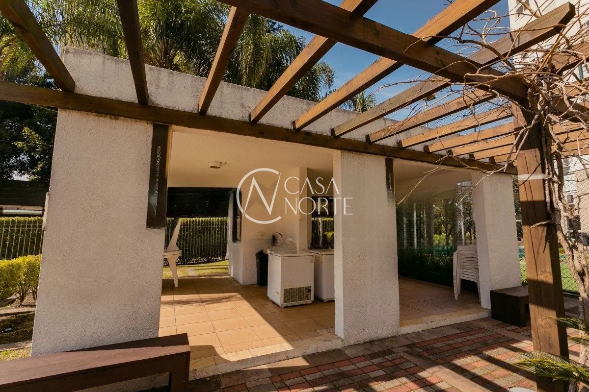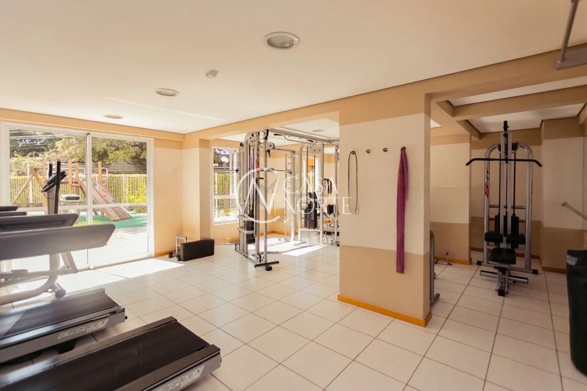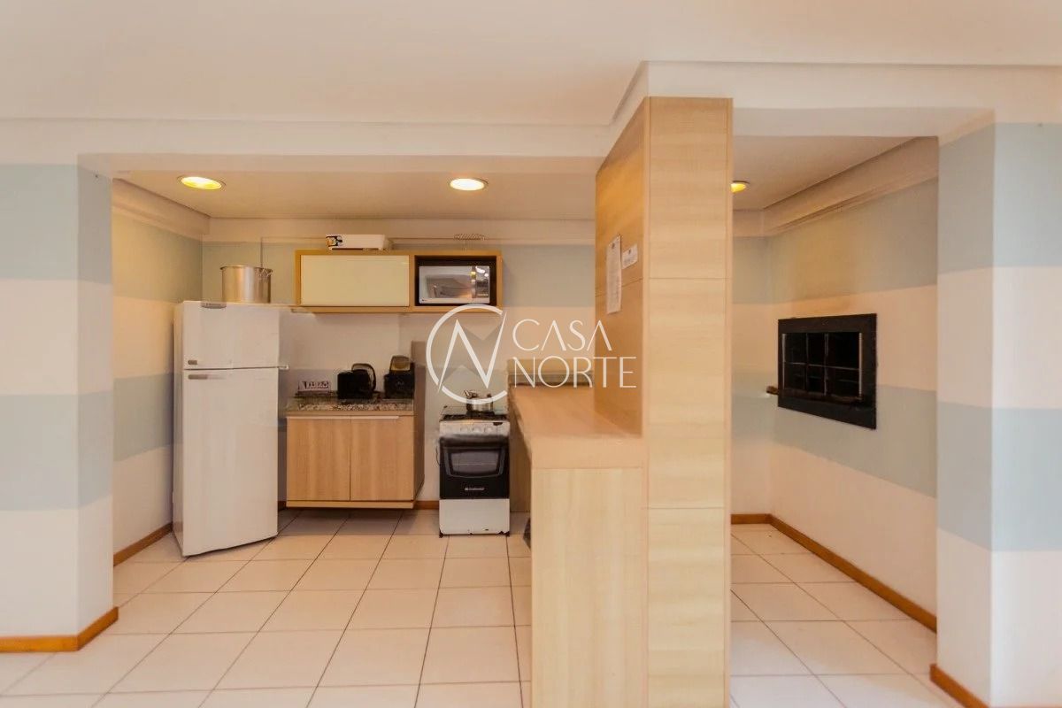 O imóvel conta com três dormitórios, sendo uma suíte, living amplo com sacada e churrasqueira, cozinha americana integrada, banheiro social e área de serviço. Possui água quente na cozinha e nos banheiros, além de uma vaga de garagem coberta e escriturada.