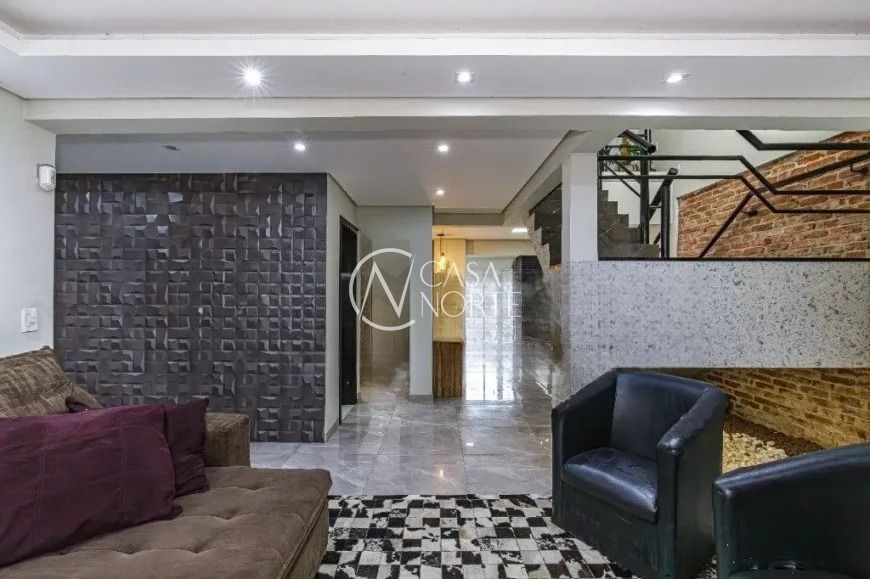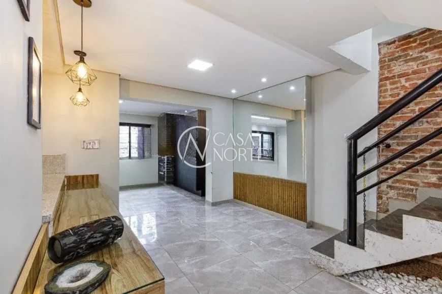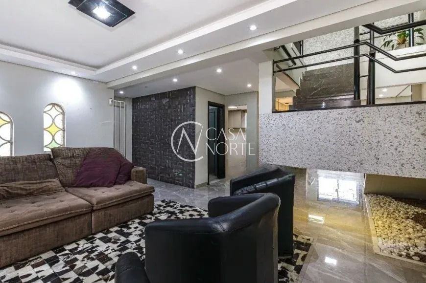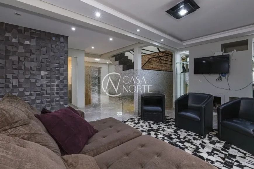 O imóvel conta com living para dois ambientes com lareira, lavabo e cozinha americana integrada. A área social se conecta ao espaço gourmet com churrasqueira, criando um ambiente funcional e agradável. Na parte externa, a casa possui piscina e um amplo pátio.