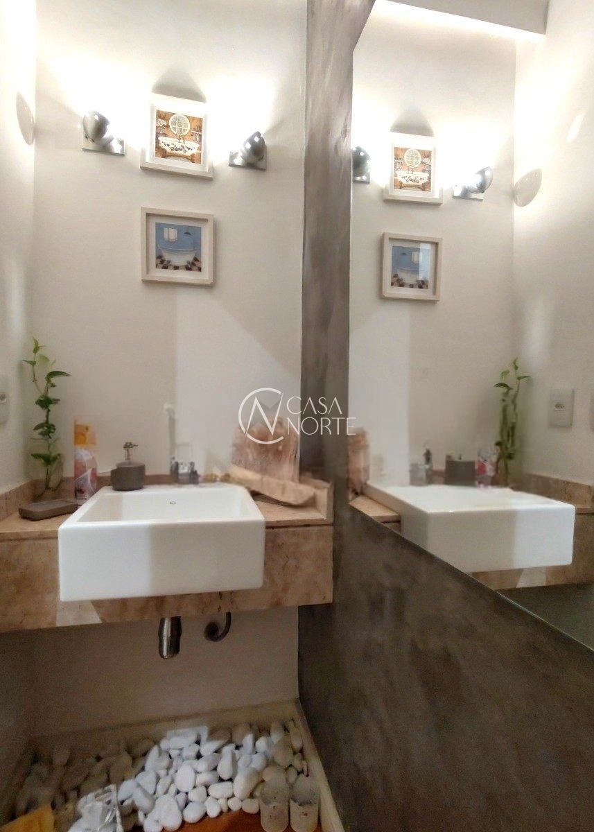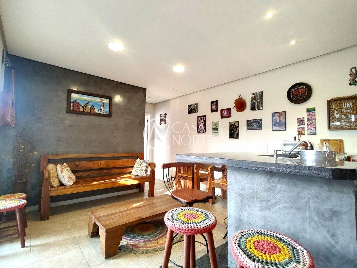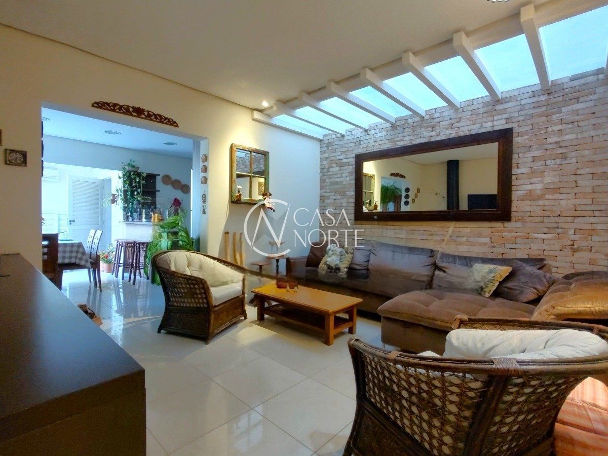 A residência conta com três dormitórios, sendo uma suíte, living com lareira, lavabo, copa e cozinha, lavanderia e um pátio privativo que conecta os ambientes com praticidade.