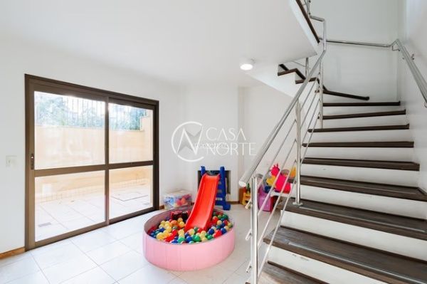 Apartamento semimobiliado com 3 quartos, sendo 1 suíte, distribuídos em 96m² privativos. O imóvel conta com living amplo para três ambientes bem definidos, churrasqueira integrada, cozinha montada e banheiro social, oferecendo conforto e praticidade no dia a dia.