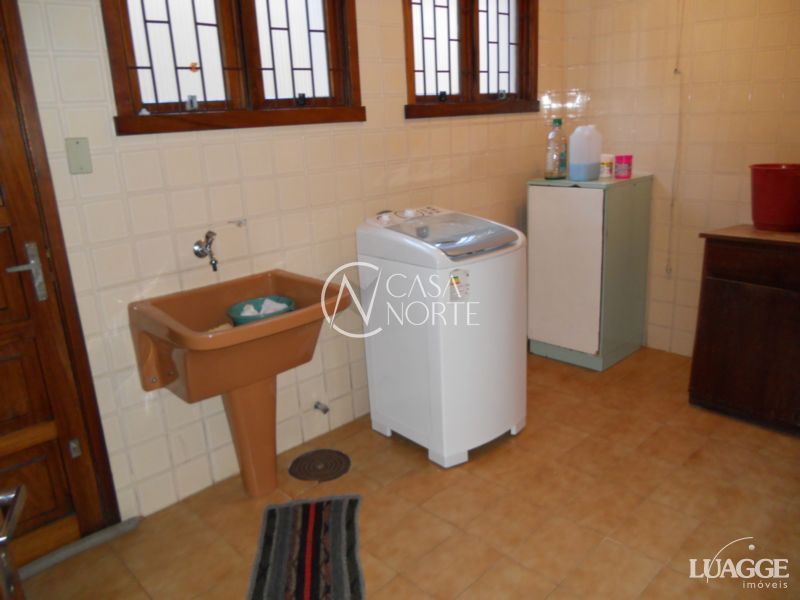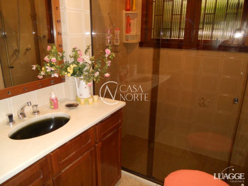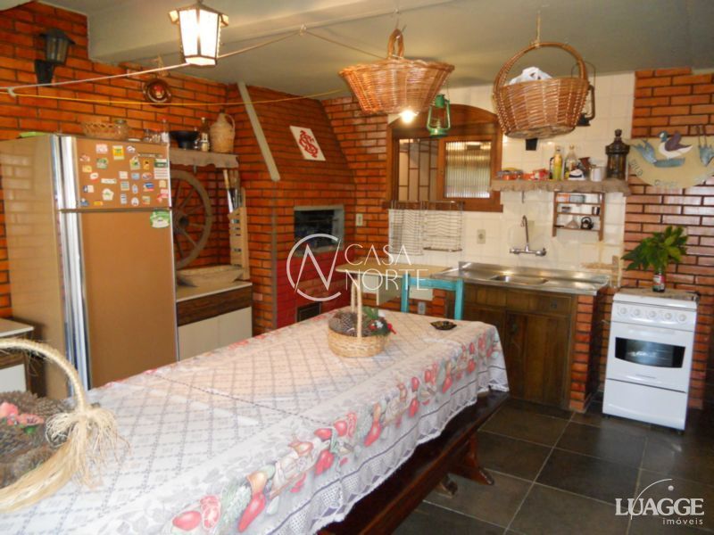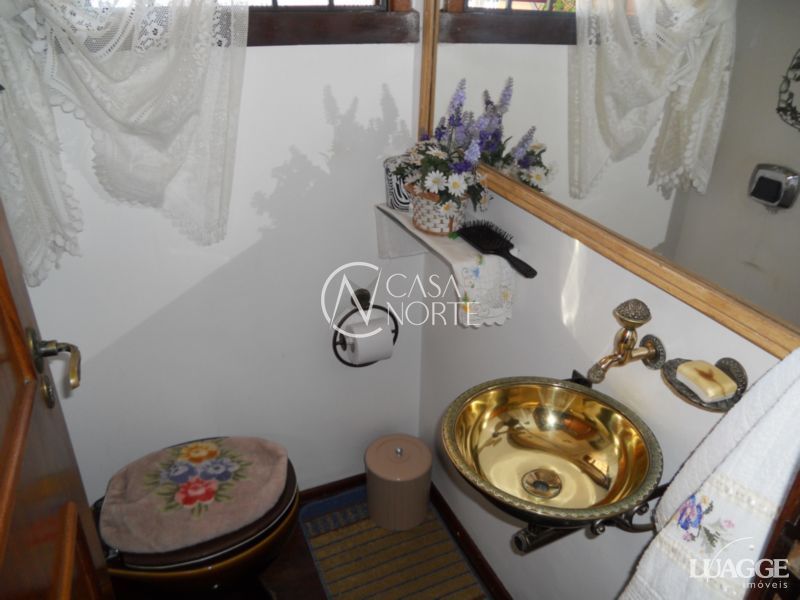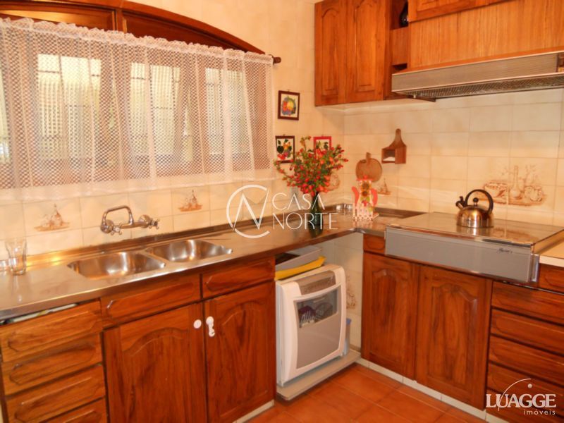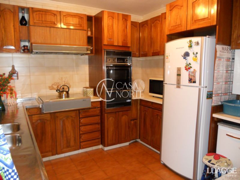 Excelente residência com 3 dormitórios, sendo 1 suíte, closet, 2 salas estar, lareira, sala jantar, banheiro social, lavabo, cozinha montada, adega, dependência de serviço completa, lavanderia, depósito, garagem fechada para 4 carros, ampla área de lazer com churrasqueira, piso em tabuão e aberturas em madeira nobre, água quente, pátio com opção para construir piscina. Ótima orientação solar, ventilação e luminosidade.