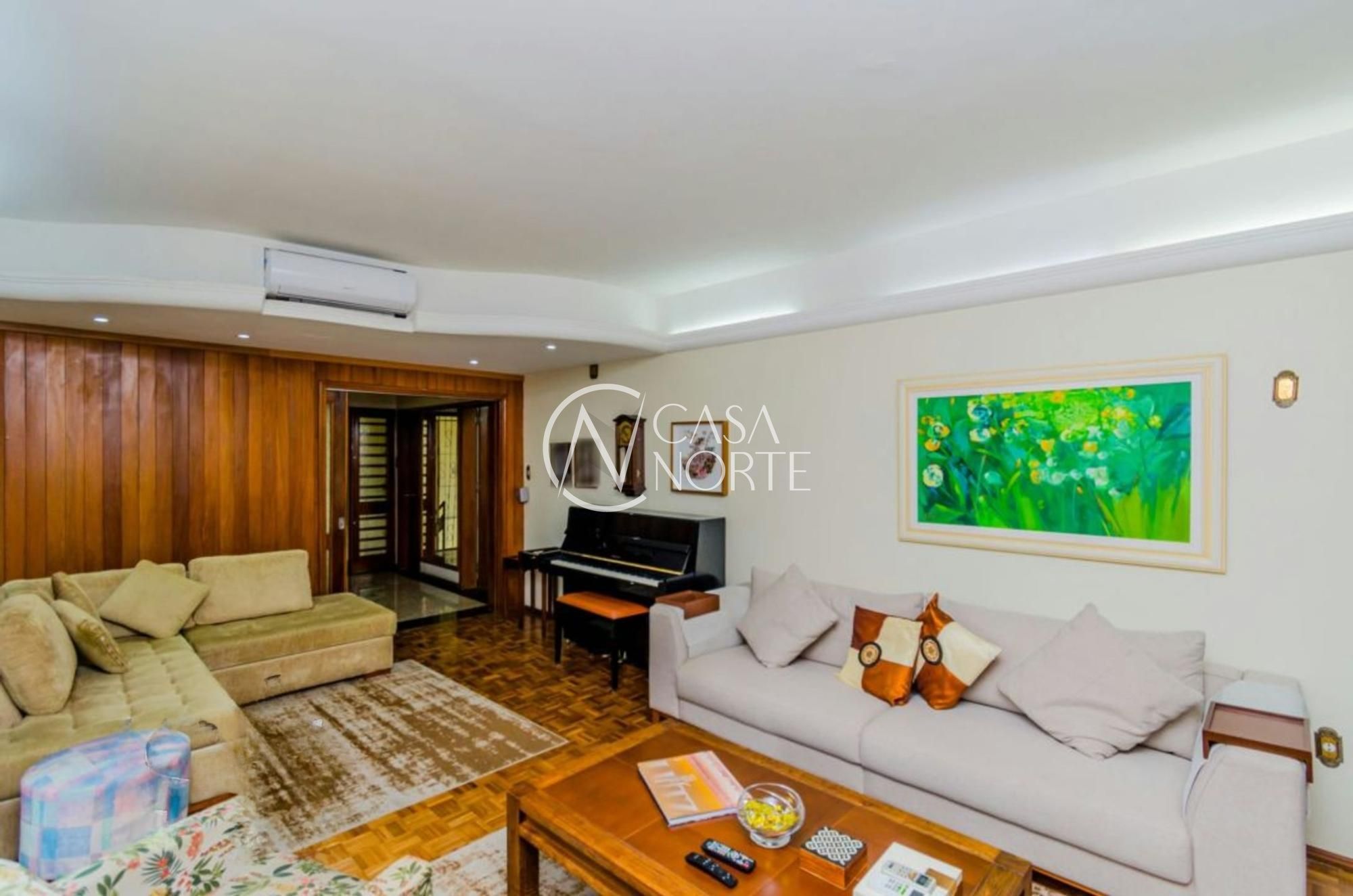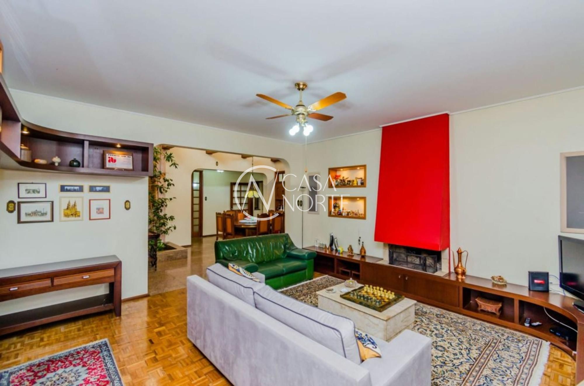 A residência dispõe de sala com lareira, cozinha, área gourmet com churrasqueira, piscina e ambientes amplos e bem distribuídos.