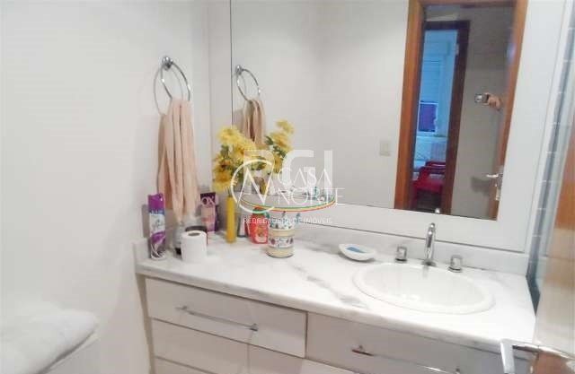 Prédio com elevador, piscina e salão de festas.