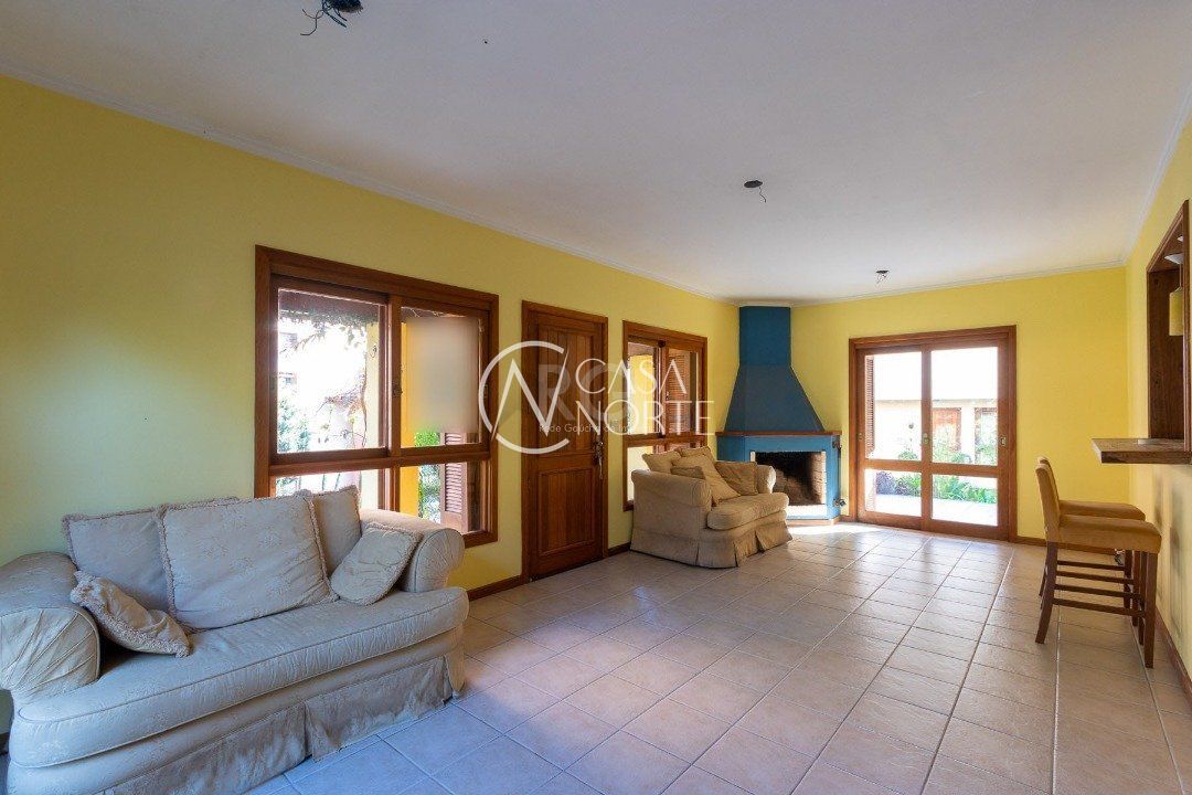 ao entrarmos temos uma sala de estar aconchegante com lareira, integrada a sala de jantar,