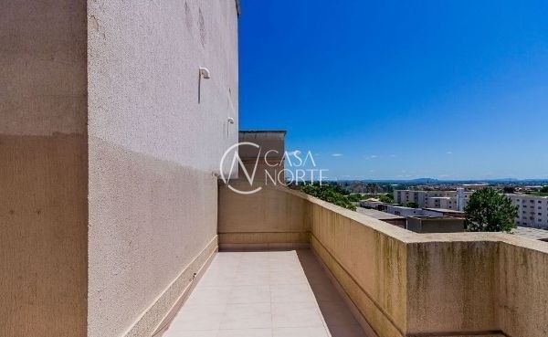 Ótima cobertura duplex no bairro Sarandi, no Condomínio Spazio Porto Mediterrâneo, com 95m² privativos, de 2 dormitórios, infra e vaga. Possui no andar inferior: Living para 2 ambientes, 2 dormitórios sendo 1 suíte, banheiro social, cozinha americana e área de serviço integrada. No andar superior possui: sala de estar, lavabo, e amplo terraço com ótima vista e muito sol. Água quente na cozinha e banheiros. Imóvel muito ventilado e iluminado. Ambos banheiros com box de vidro. Possui uma vaga de garagem escriturada. Condomínio com total infra estrutura de lazer e segurança. Localizado em ótima região próximo das Avenidas Sertório e Baltazar de Oliveira Garcia, com todos os recursos próximos. Aceita financiamento. Agende já uma visita.