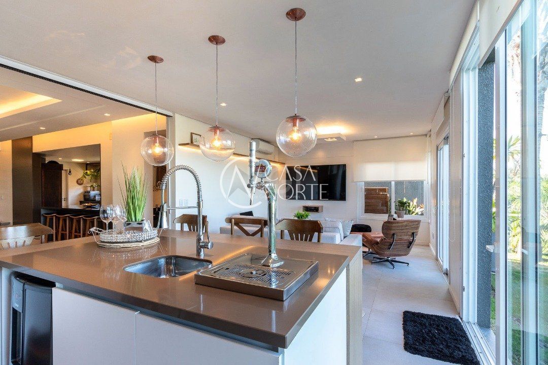 Linda varanda envidraçada, com ambiente de estar, e novíssimo espaço gourmet com chopeira e churrasqueira: um lugar ideal para receber amigos e admirar a vista para o lago, e campo de golfe.