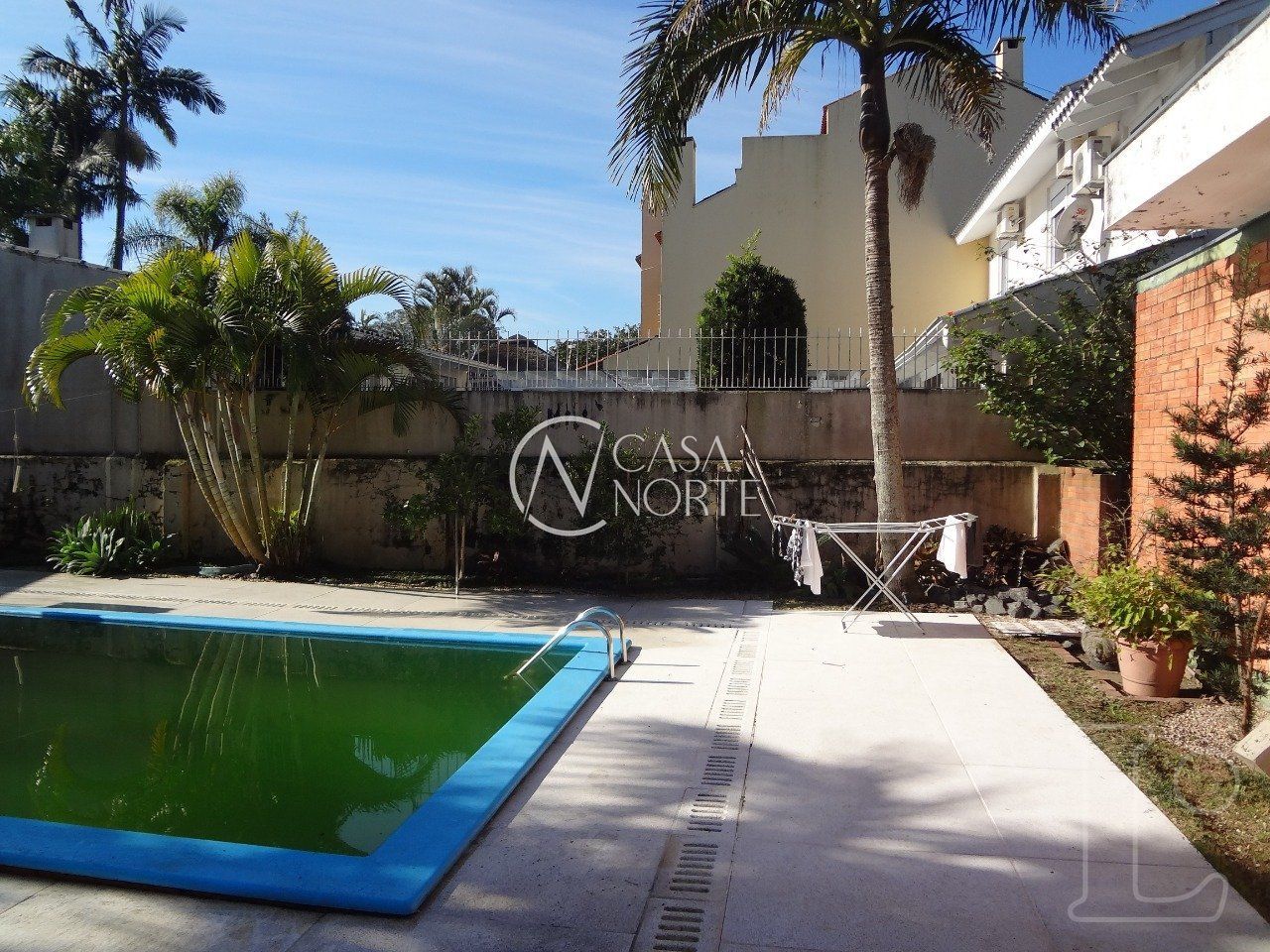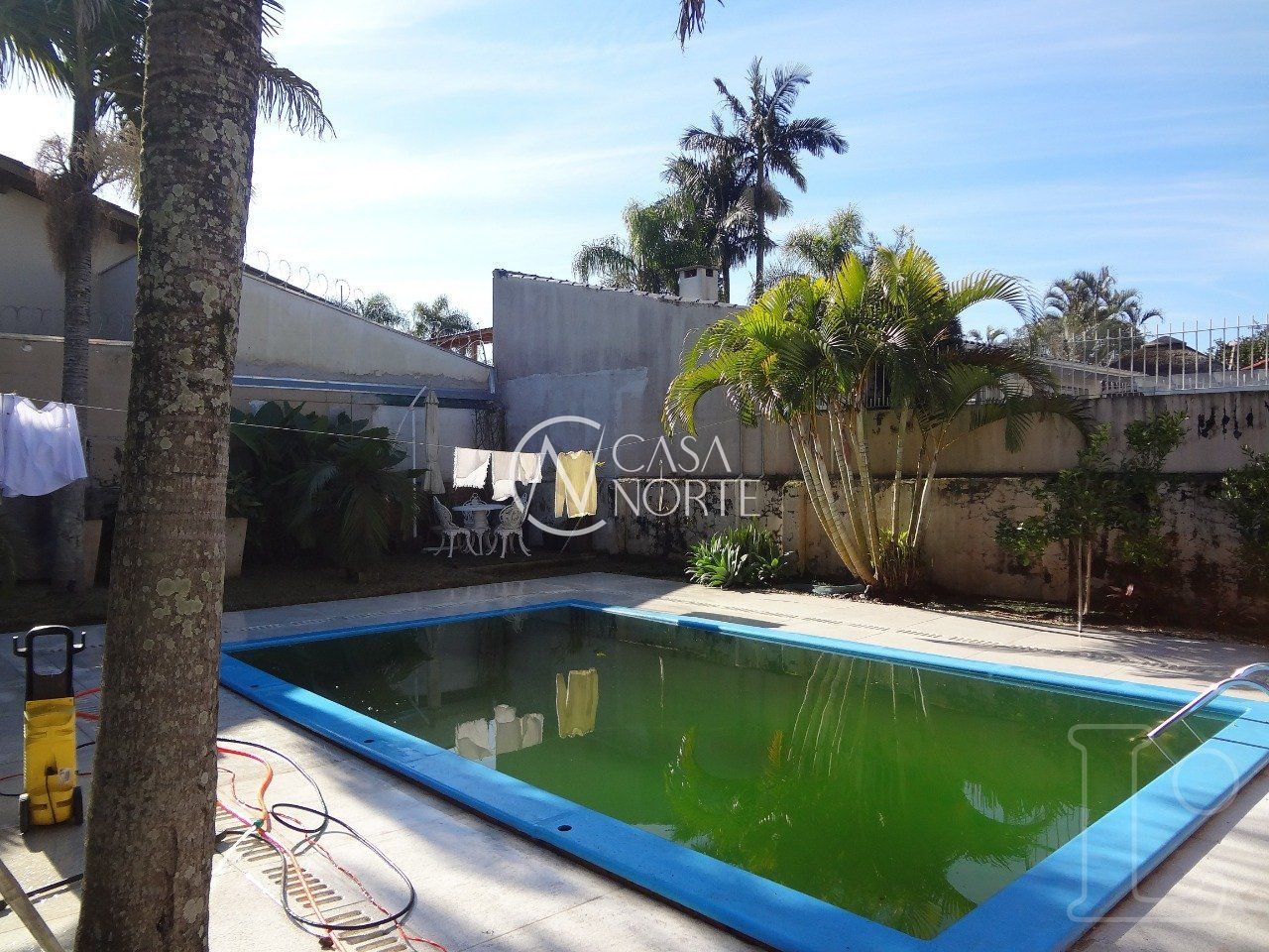 casa em terreno de esquina, com um enorme patio, com piscina, canil e,