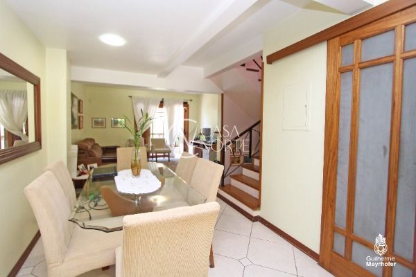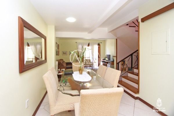 Excelente casa no bairro Tristeza, Zona Sul em Porto Alegre, no Residencial Gardens. Casa com 3 dormitórios, sendo 1 deles suíte e amplo living com 2 ambientes. No subsolo: garagem para 2 carros coberta e mais uma descoberta, fazendo um total de 3 vagas, lavanderia e dependência de empregada. Imóvel diferenciado! É entrar e morar. Tudo com muito bom gosto e aconchego. Condomínio com salão de festas, piscina e portaria virtual. Venha conhecer!