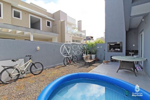 Casa 4 dormitórios sendo 3 suítes, 206,00m² de área construída, distribuída em ambientes amplos, living 2 ambientes sala estar/jantar, lareira, cozinha, 3 banheiros, área de serviço, garagem coberta, espera para terraço, churrasqueira coberta e pátio. Condomínio com piscina adulto e infantil. academia, salão de festas, playground, portaria 24hs, estacionamento para visitantes.