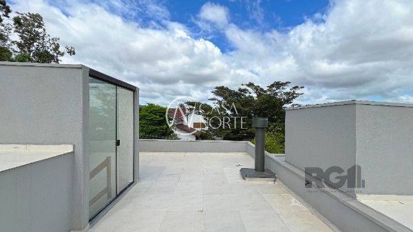 Lindo sobrado com terraço e vista pro Rio, no bairro Tristeza. Em estilo contemporâneo, revestimentos em porcelanato, aberturas em alumínio preto. No pavimento térreo living 2 ambientes integrando cozinha e sala com lareira, lavabo, área de serviço e pátio, no pavimento superior 3 dormitórios, sendo uma suíte com sacada, mais dois dormitórios. No terceiro pavimento temos uma vista maravilhosa do bairro e Rio Guaíba, com muito espaço, podendo construir home office, espaço gourmet, churrasqueira, colocar Spa Jacuzzi....
