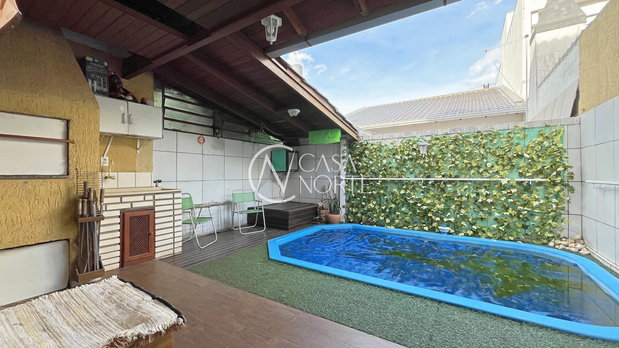 Excelente sobrado no Residencial Jardins do prado com área privativa de 177,71m², com 3 pavimentos. 03 dormitórios, sendo uma suite, living integrado com sala de jantar, cozinha americana, área fundos coberta e piscina. Sotão dois ambientes com área de churrasqueira. estacionamento coberto para uma vaga.