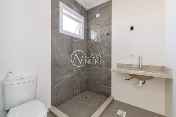 Aberturas em PVC da Bazze, propiciando isolamento termo acústico. Porta frontal tipo ripada confeccionada em madeiras nobres maciças. Porcelanatos instalados no living, banheiros, sacada e garagem. Metais DECA e DOCOL. Todos os tampos em Granito, já instalados. Escada em mármore travertino. Corrimão em aço inox. Muros e janelas dotados de acabamento em pedra.