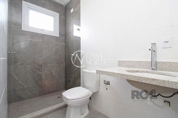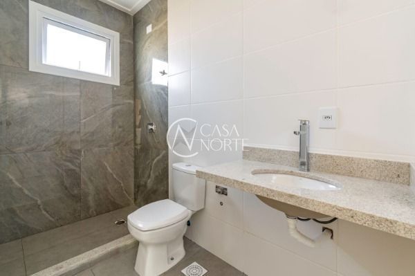 Aberturas em PVC da Bazze, propiciando isolamento termo acústico. Porta frontal tipo ripada confeccionada em madeiras nobres maciças. Porcelanatos instalados no living, banheiros, sacada e garagem. Metais DECA e DOCOL. Todos os tampos em Granito, já instalados. Escada em mármore travertino. Corrimão em aço inox. Muros e janelas dotados de acabamento em pedra.