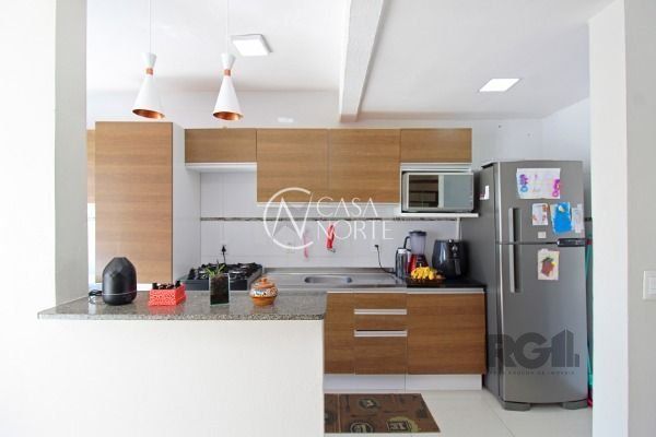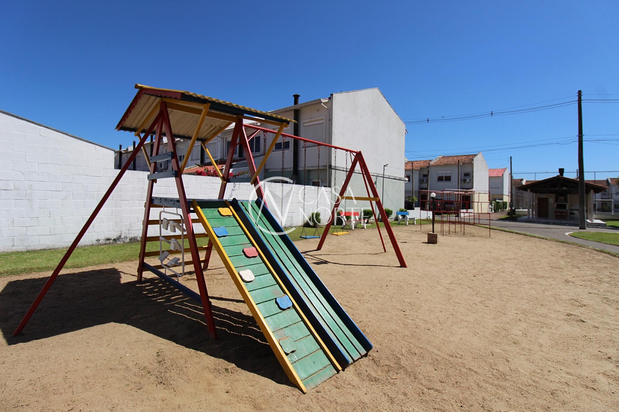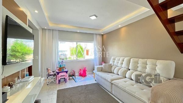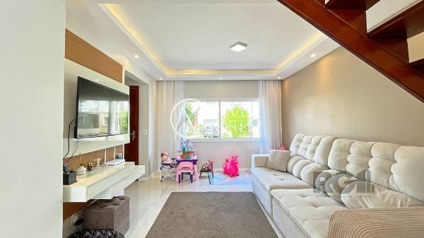 Casa em condomínio com 3 dormitórios, suíte, banheiro social, Living dois ambiente, lavabo, área de serviço e pátio. Teto de todas as peças em gesso. Condomínio com portaria 24h, quadra de esporte, quiosque com churrasqueira. Agende sua visita!