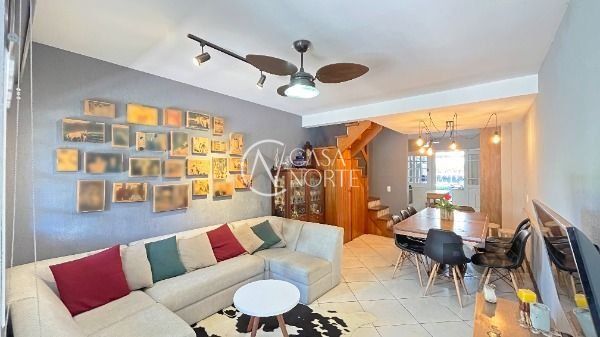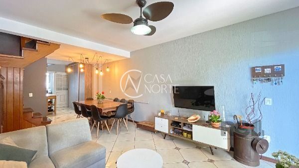 São 132,36 m² de área privativa distribuídos 3 pavimentos, sendo o primeiro composto por espaçoso living para dois ambientes, lavabo, cozinha americana, área de serviço, churrasqueira e pátio.