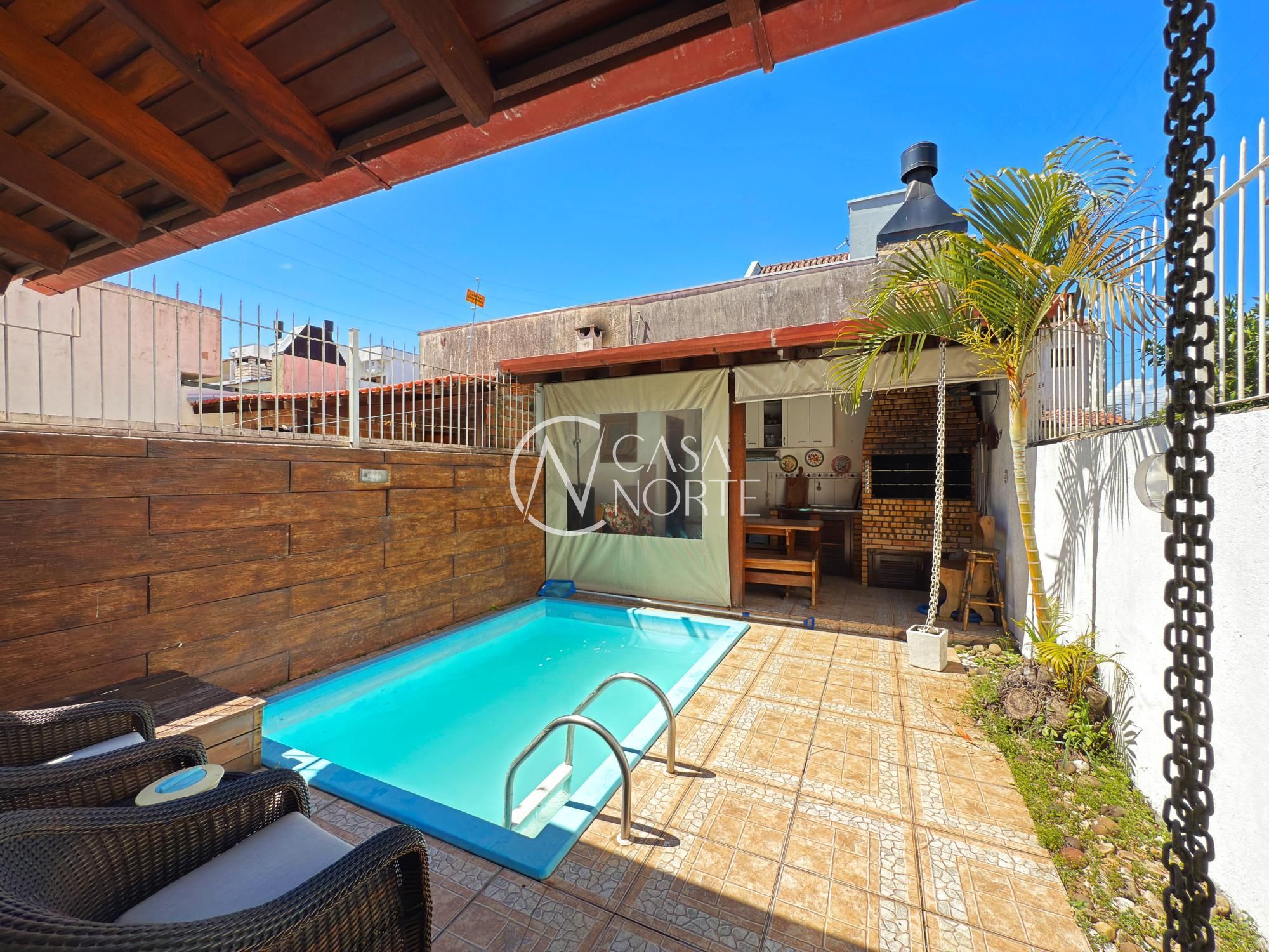 Lindo sobrado com 03 dormitórios, sendo 01 suíte, 01 banheiro na parte superior. Na parte inferior: 01living, 01 cozinha estilo americana, 01 lavabo. No pátio uma linda piscina para seu conforto. Ao fundo um aconchegante espaço gourmet com churrasqueira, pia e 01 lavabo. Espaço para colocar forno, fogão e geladeira. Vaga para 02 veículos descoberta.