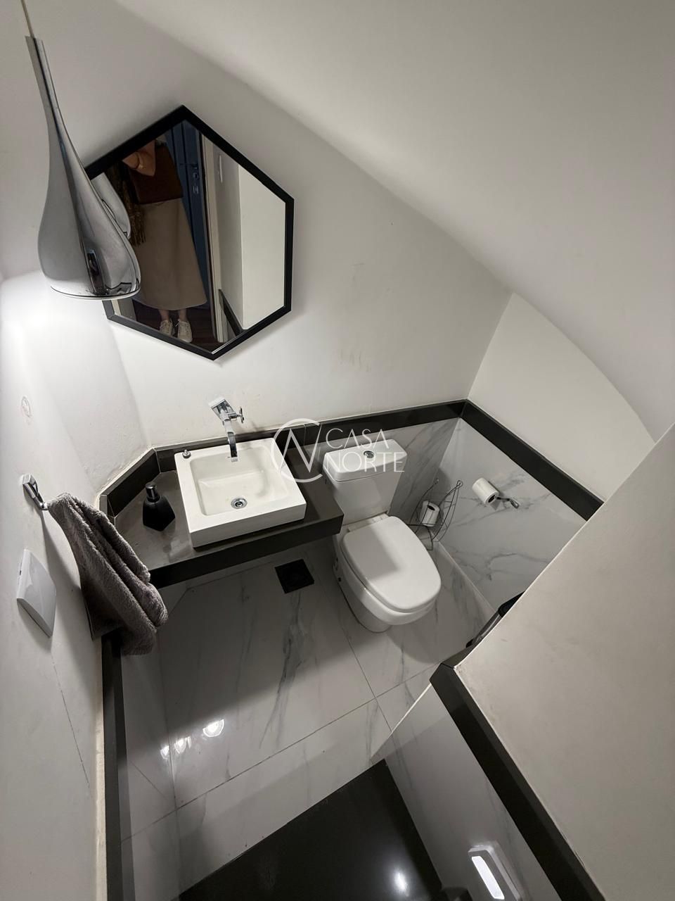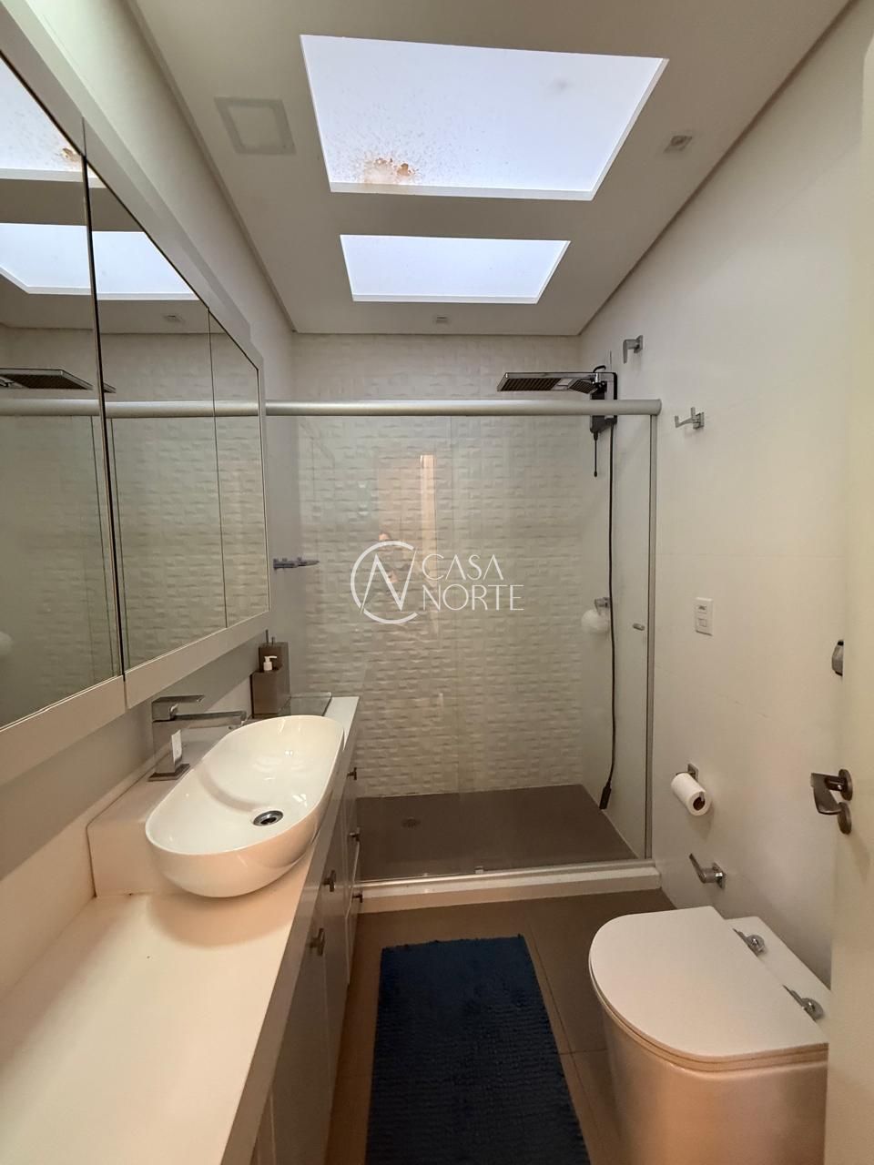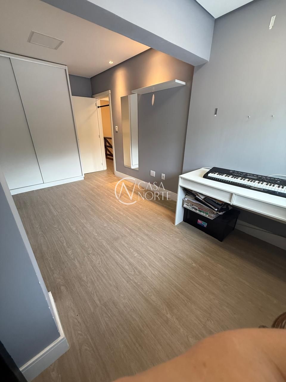No segundo pavimento são 3 dormitórios, sendo 1 suíte com sacada, banheiro social e hall íntimo com armário.