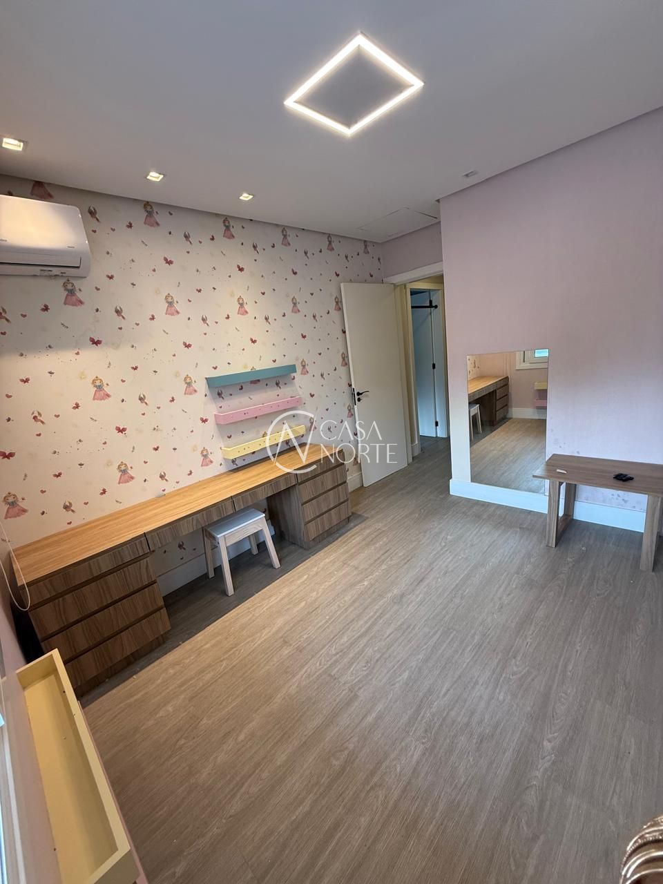 As aberturas são em PVC, todas com tela para insetos e split nos dormitórios