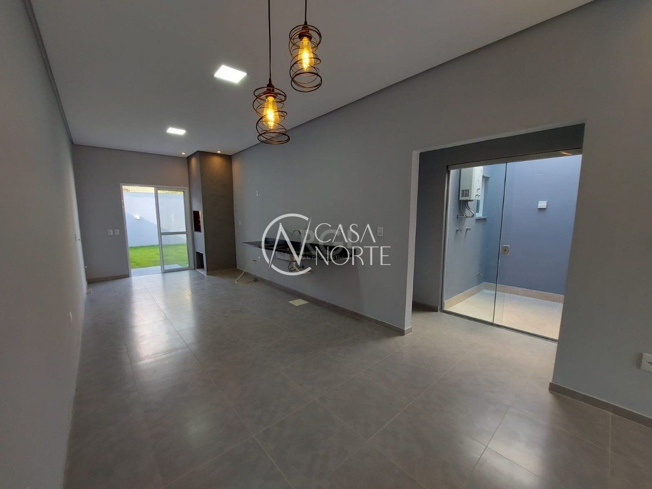 A casa tem 84,14 m² com 2 quartos sendo uma suíte, um belíssimo jardim de inverno que ilumina o corredor e a sala, com pé direito de 3 m, com lareira e churrasqueira, conceito integrado entre cozinha sala e sala de estar, todas aberturas de alumínio, porta de alumínio, janelas dos quartos com persianas integradas, todas janelas com mosquiteiro, pátio com grama americana (usada em campo de golf) teto com rebaixo em gesso, terraço do tamanho da casa com possibilidade de construir no segundo andar e projeto aprovado na Prefeitura para mais uma suíte. Confira esta oportunidade!!!