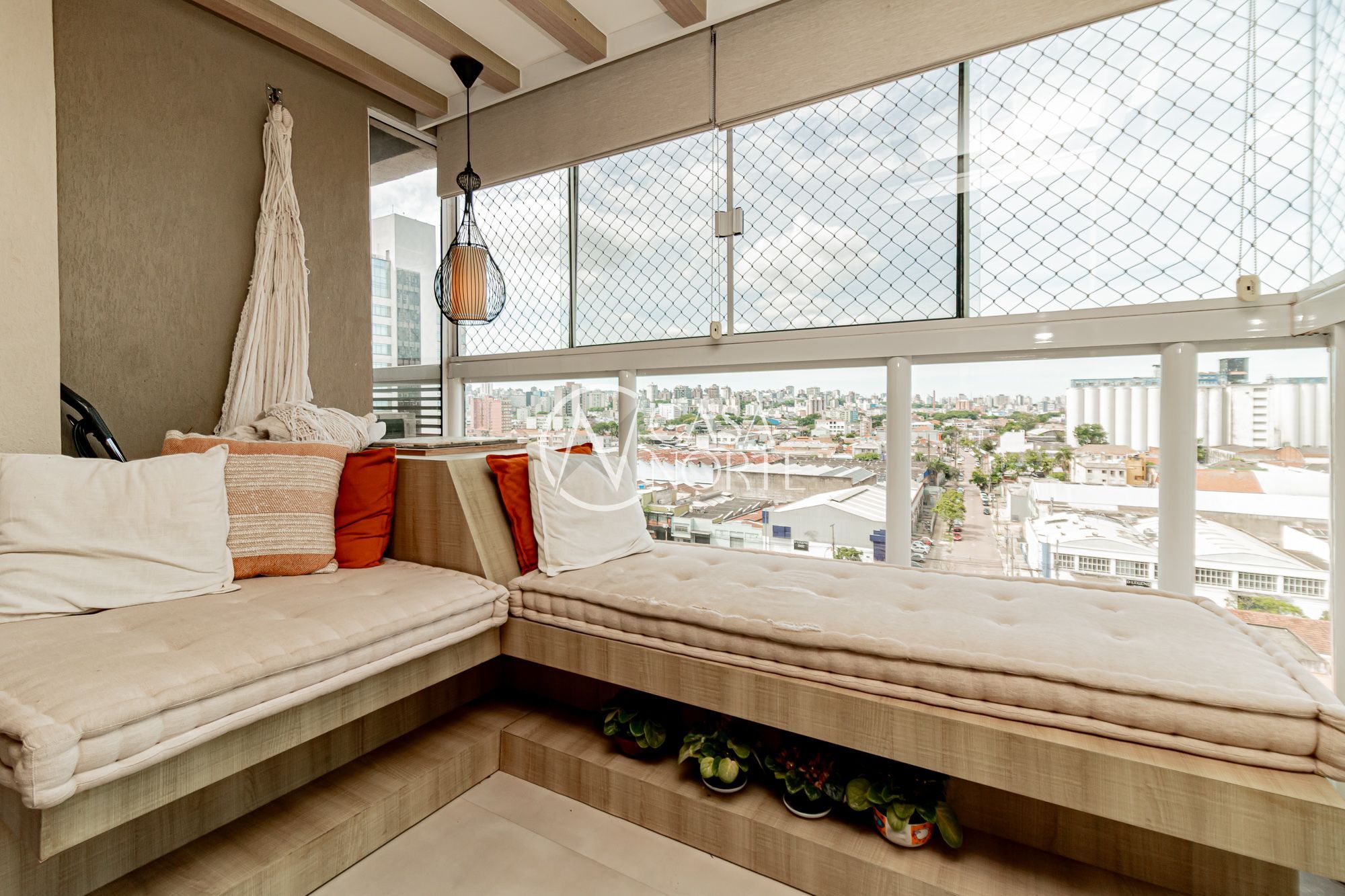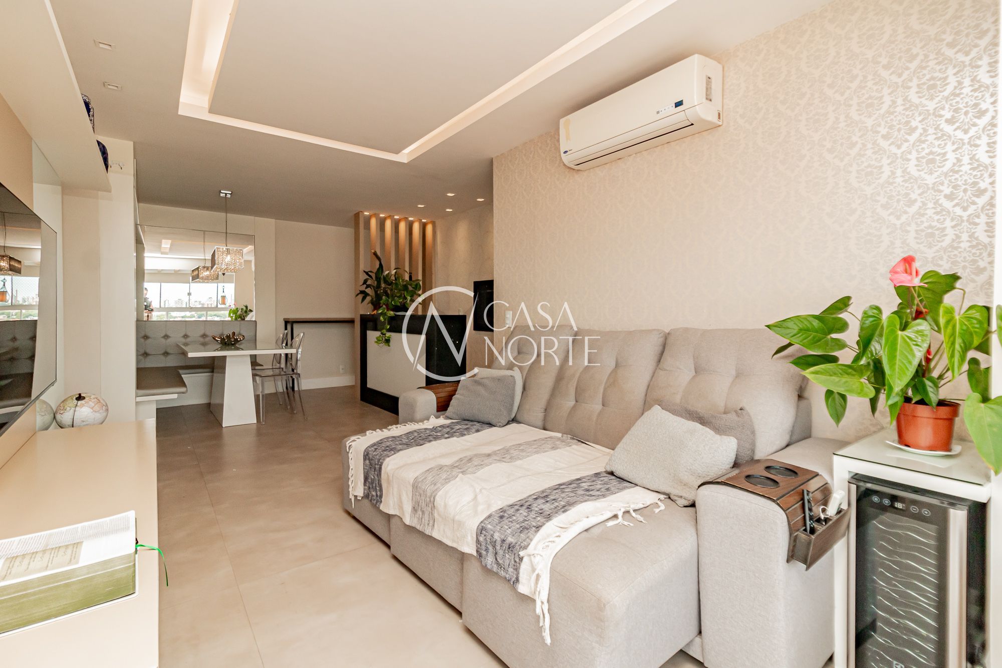 Totalmente mobiliado, living amplo com sala de estar e sacada integrada.