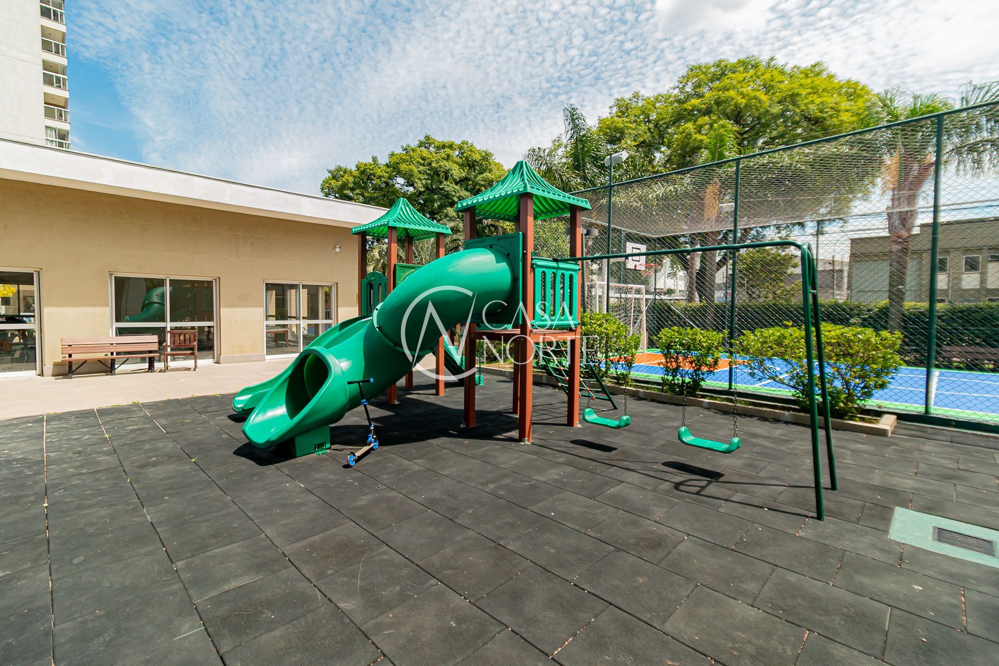 Conta com portaria 24 horas, segurança, salão de festas, fitness, lavanderia (do condomínio), playkids interno e externo, sala de jogos com Ping Pong, piscina adulto e infantil, quadrinha poliesportiva.
