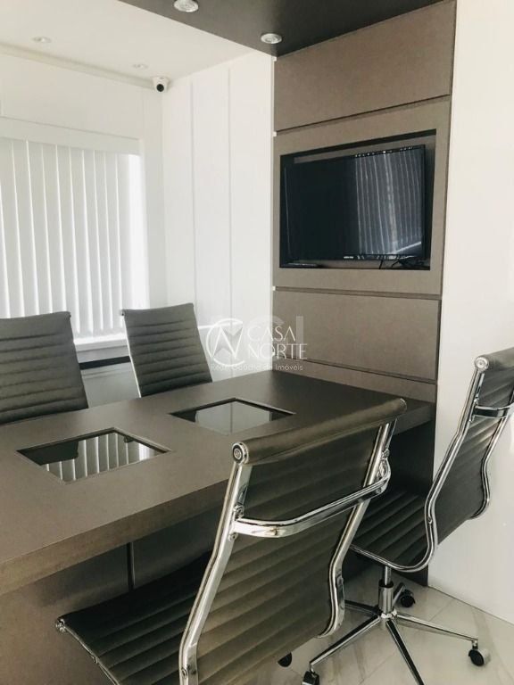 Excelente sala para escritório com 3 ambientes - recepção, escritório e sala de reuniões, paredes revestidas, mobiliário sob medida, cozinha embutida, microondas, purificador de água refrigerado, frigobar retrô, central de monitoramento, câmeras nos ambientes, mesa reunião com projeto luminotécnico, 5 cadeiras diretor, tv smart, cofres com chaves, divisória dupla a prova de som com porta de correr, cortinas sob medida, 3 split inverter. 1 vaga de garagem.