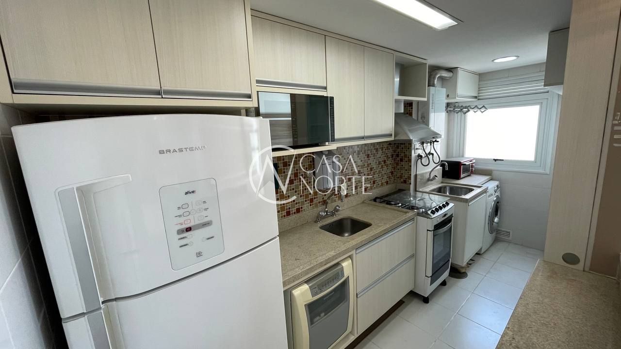 O imóvel será entregue totalmente mobiliado, com móveis sob medida, projeto assinado por arquiteto e piso vinílico de alta qualidade. Conta ainda com 2 vagas de garagem cobertas.
