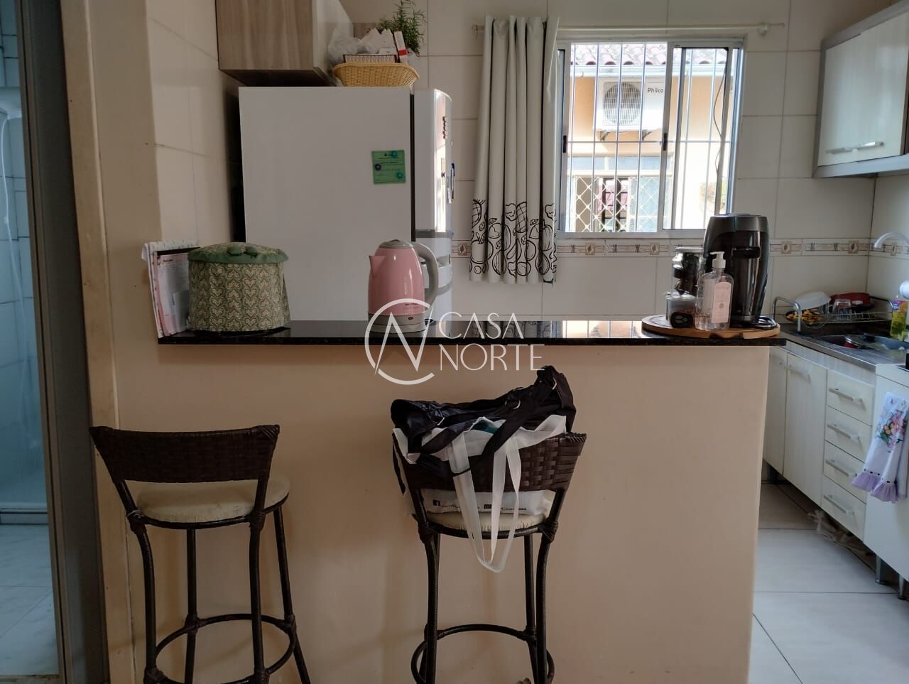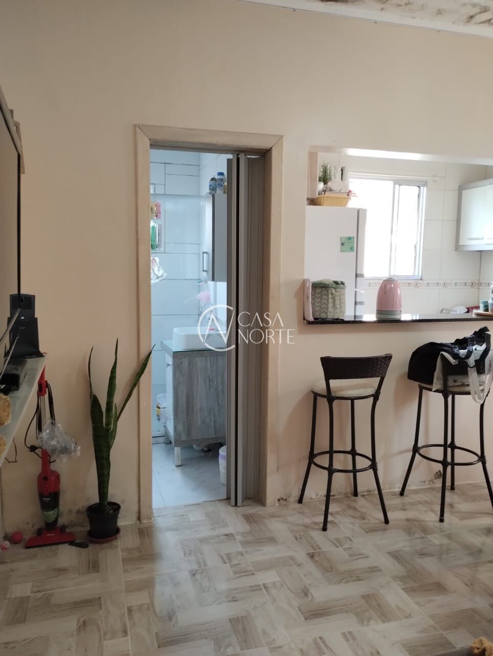 A segunda casa, também dois dormitórios, banheiro, sala, cozinha estilo americano. Com + ou - 50 m²
