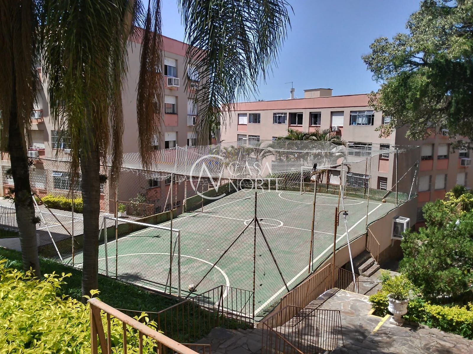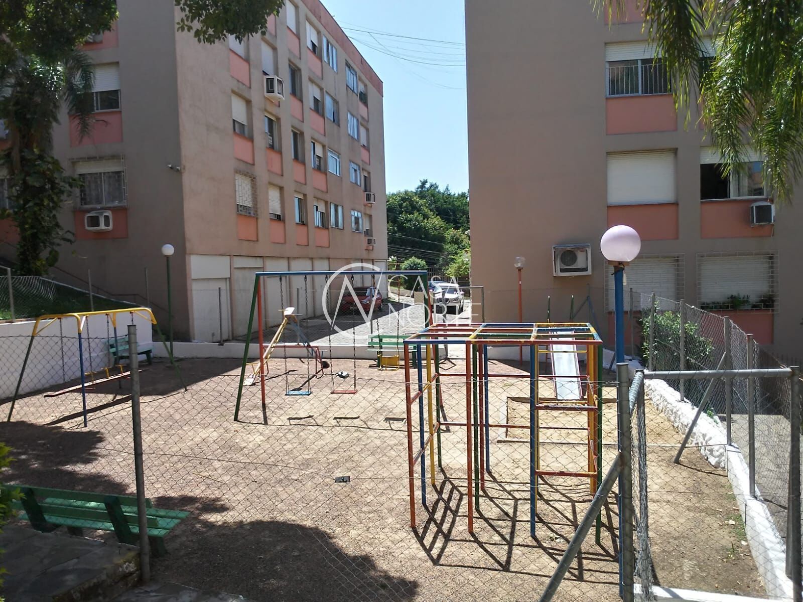 Condomínio com portaria 24 horas, salão de festas, churrasqueiras e pracinha infantil.