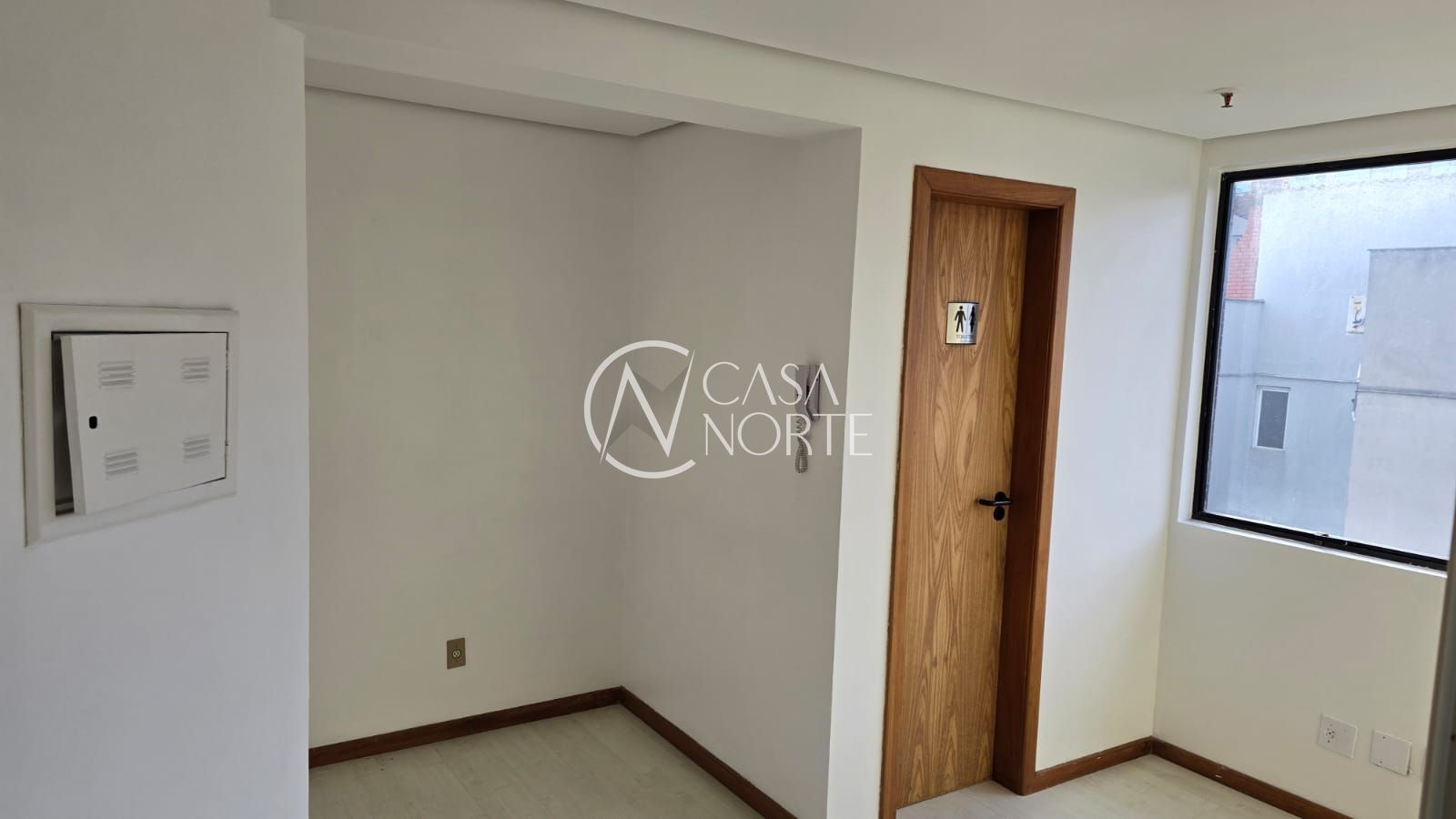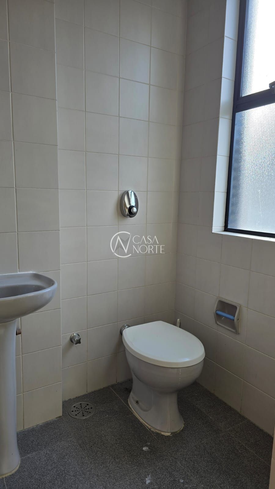 Banheiro e tem piso laminado, proporcionando um ambiente moderno, limpo e confortável para o dia a dia profissional.