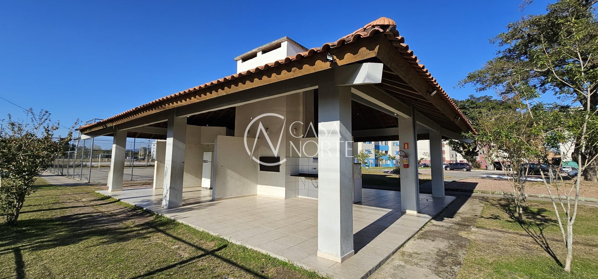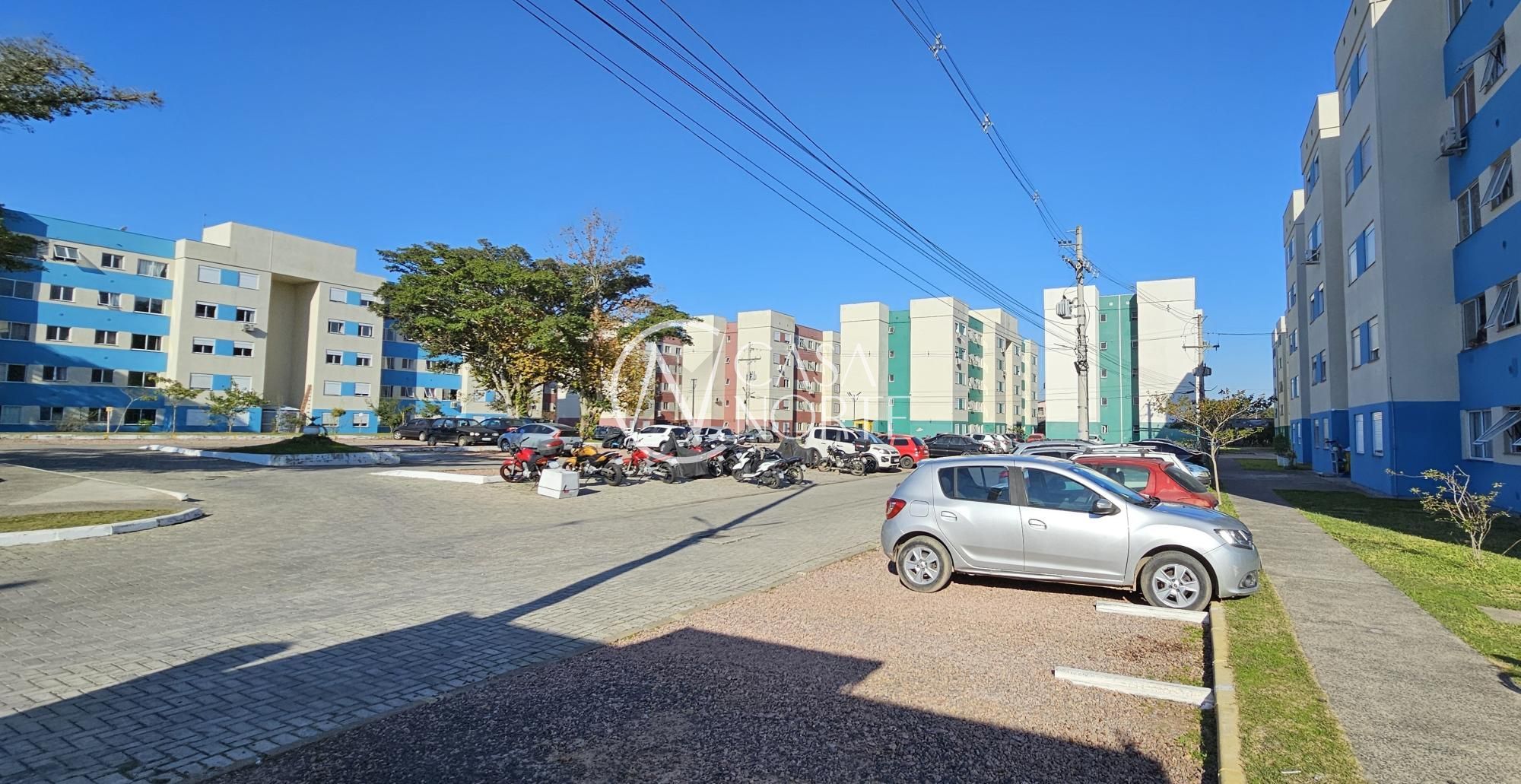 Apartamento térreo, com 2 dormitórios, living 2 ambientes, cozinha, área de serviço, banheiro social. Condomínio com portaria 24hrs, quadra de esporte, quiosques com churrasqueira, espaço pets.