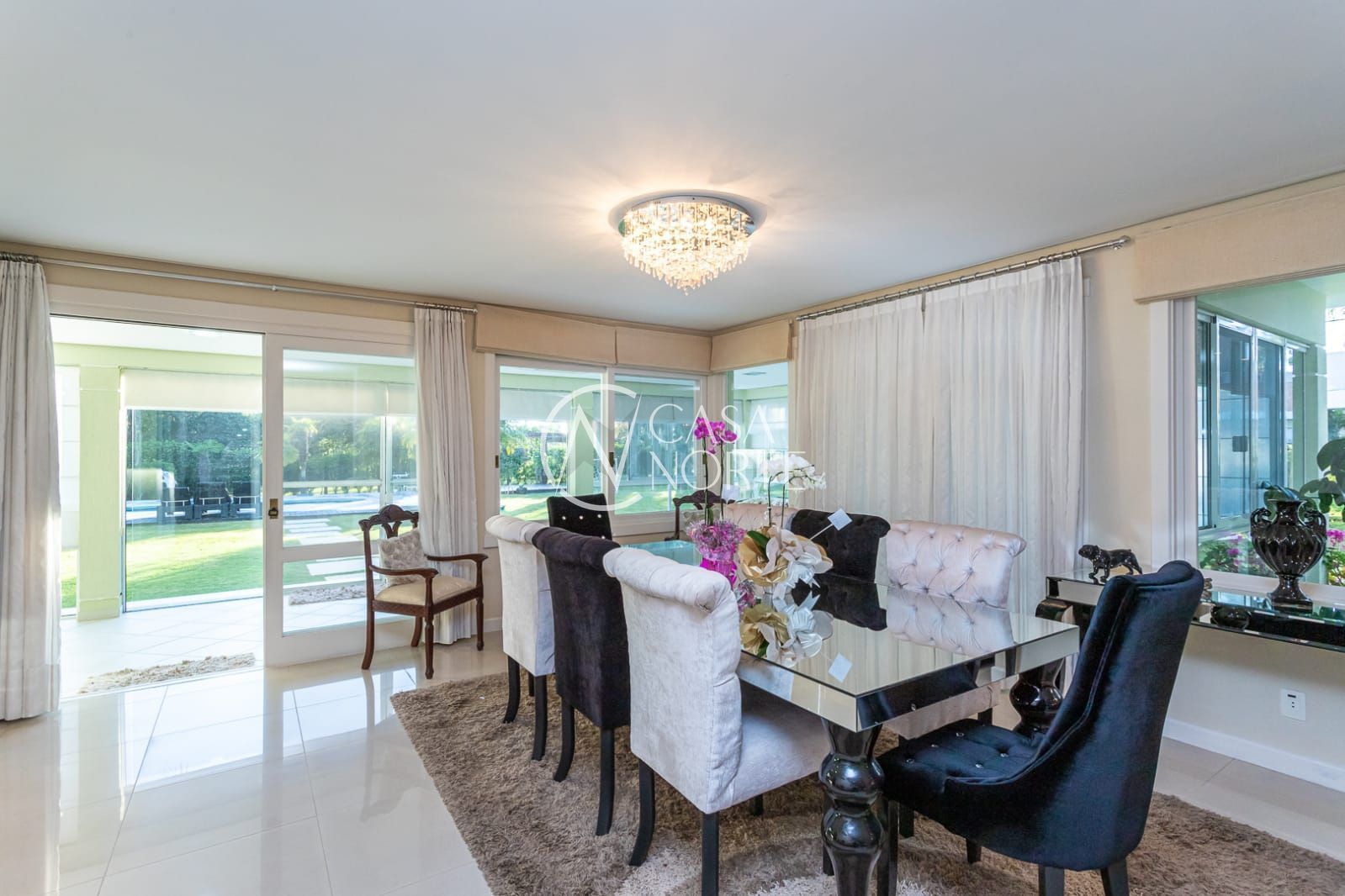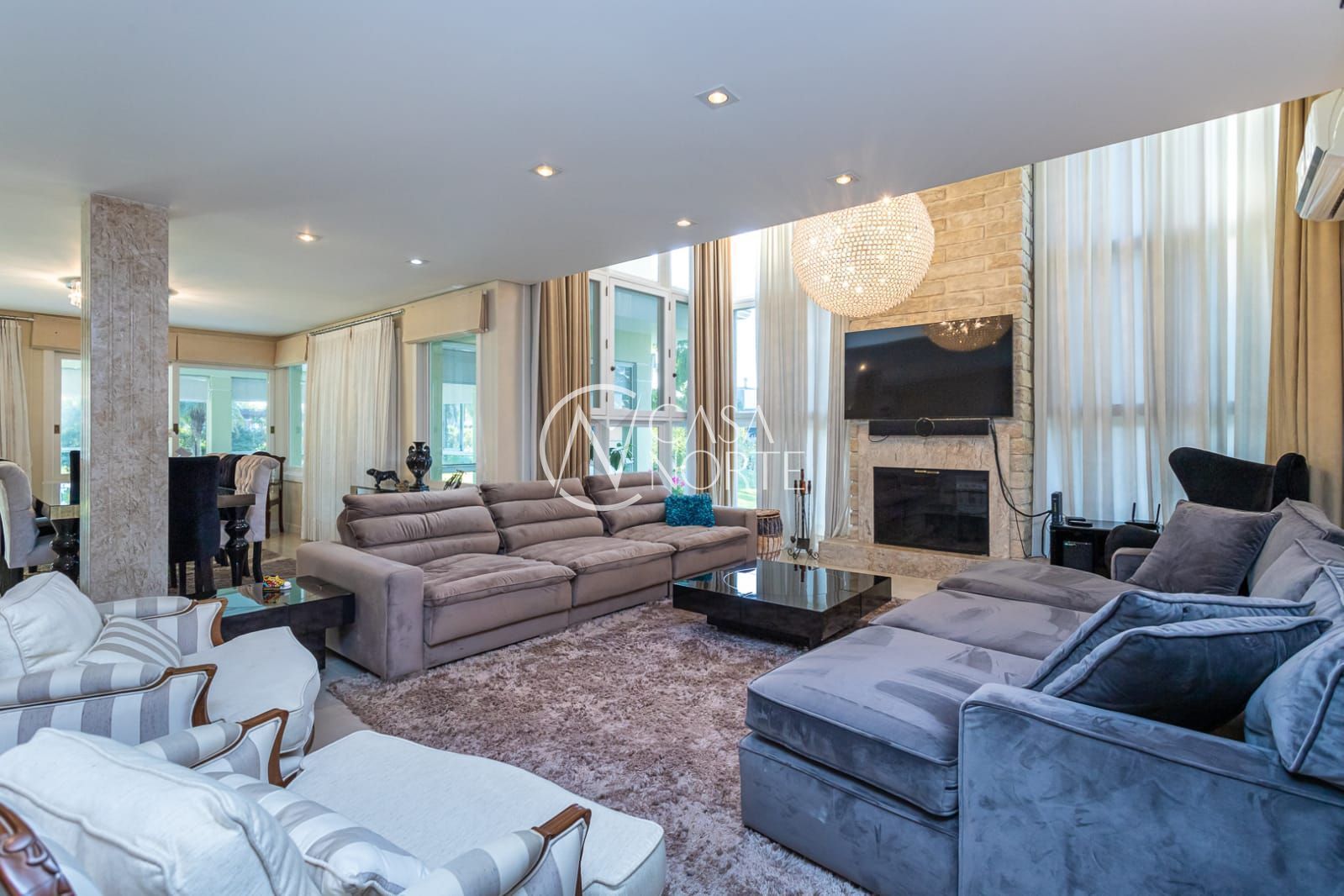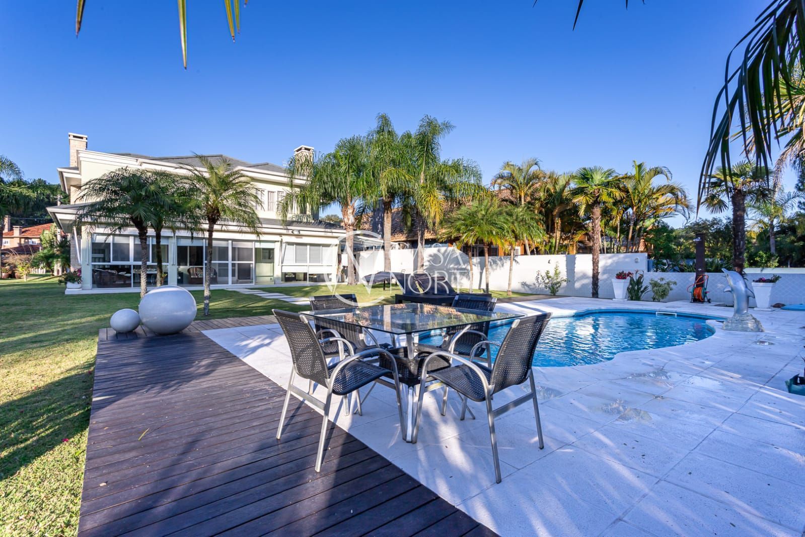 Uma casa moderna, de esquina com 4 suítes, sendo 1 suíte master, closet, 6 banheiros, cozinha ampla e com móveis finamente planejados, living com 2 ambientes, ar condicionado em quase todos ambientes, varanda fechada, área gourmet com churrasqueira, sacada, despensa, lavanderia, piso em porcelanato, garagem coberta para 3 carros. Pátio com um maravilhoso paisagismo , pergolado, campinho de futebol e uma exuberante piscina. A casa será vendida totalmente mobiliada. Agende já sua visita e venha conhecer seu novo lar!