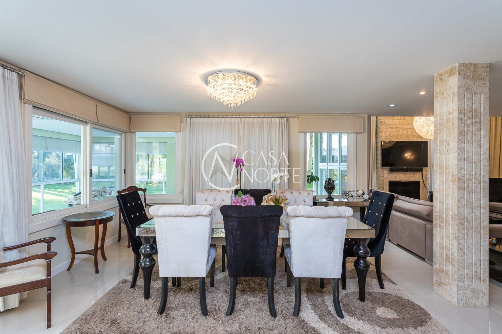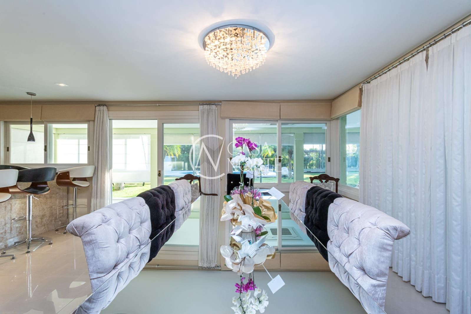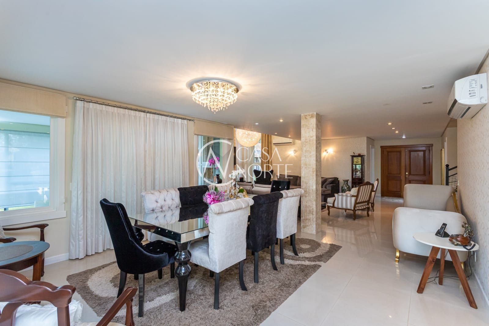 Uma casa moderna, de esquina com 4 suítes, sendo 1 suíte master, closet, 6 banheiros, cozinha ampla e com móveis finamente planejados, living com 2 ambientes, ar condicionado em quase todos ambientes, varanda fechada, área gourmet com churrasqueira, sacada, despensa, lavanderia, piso em porcelanato, garagem coberta para 3 carros. Pátio com um maravilhoso paisagismo , pergolado, campinho de futebol e uma exuberante piscina. A casa será vendida totalmente mobiliada. Agende já sua visita e venha conhecer seu novo lar!
