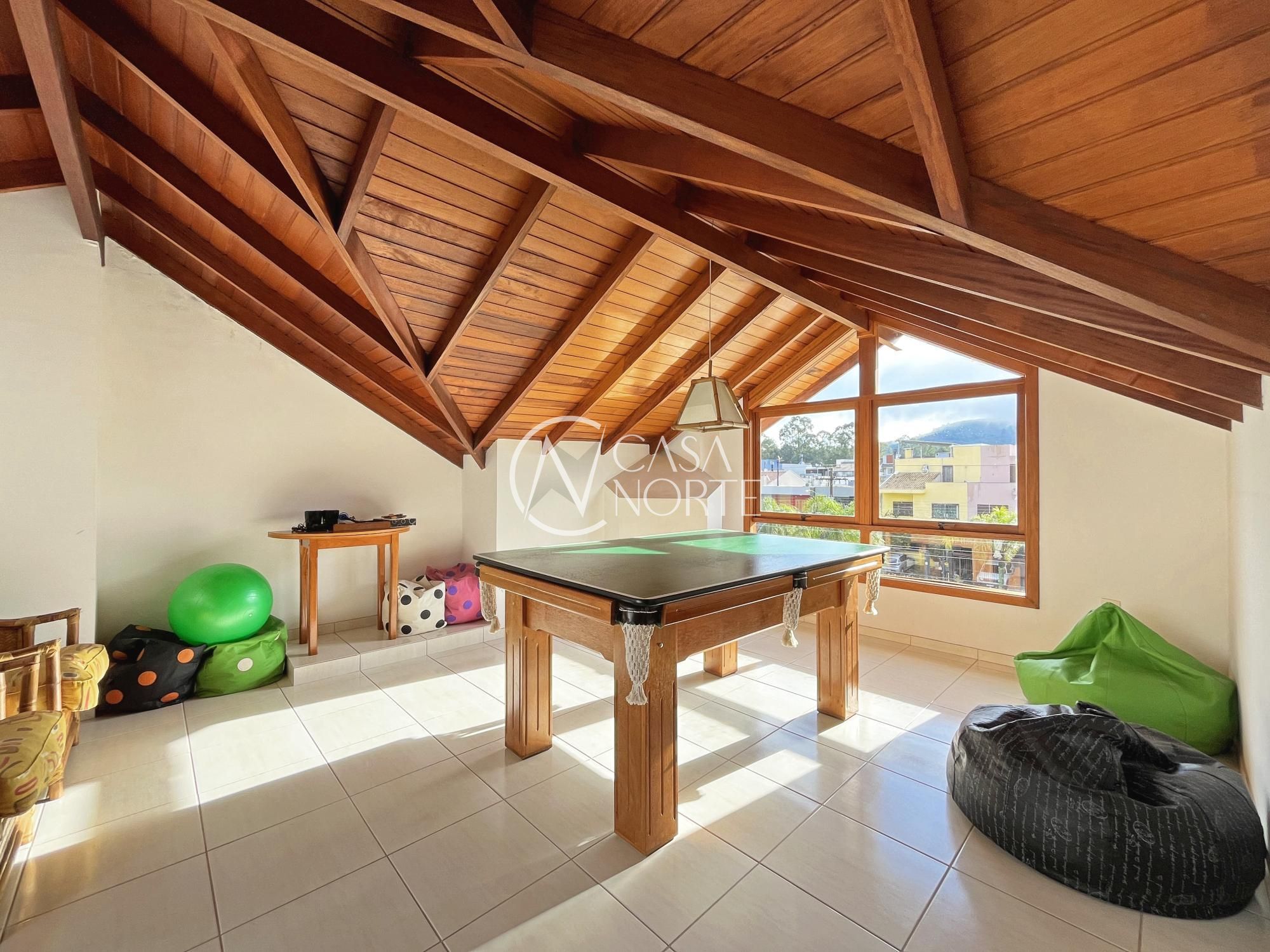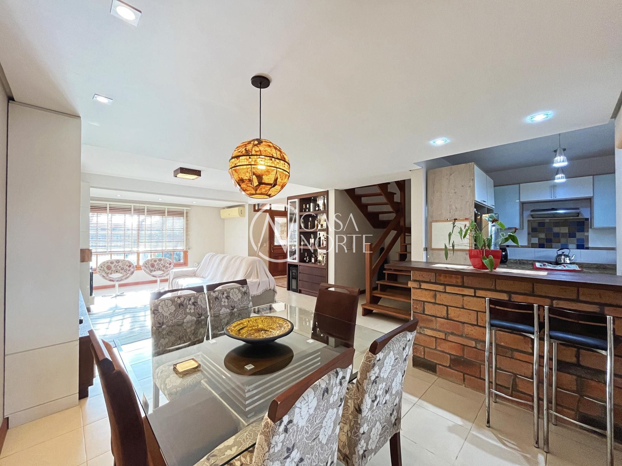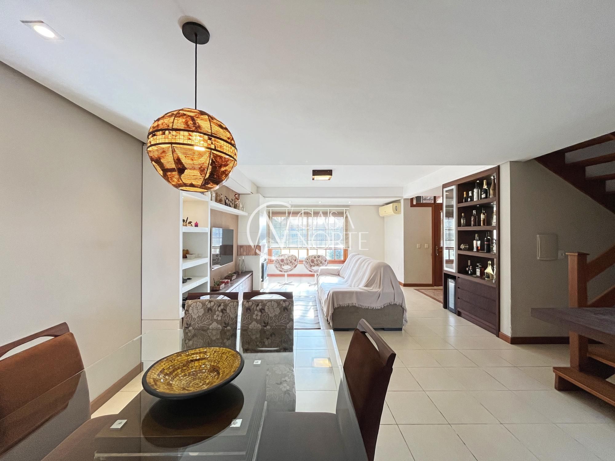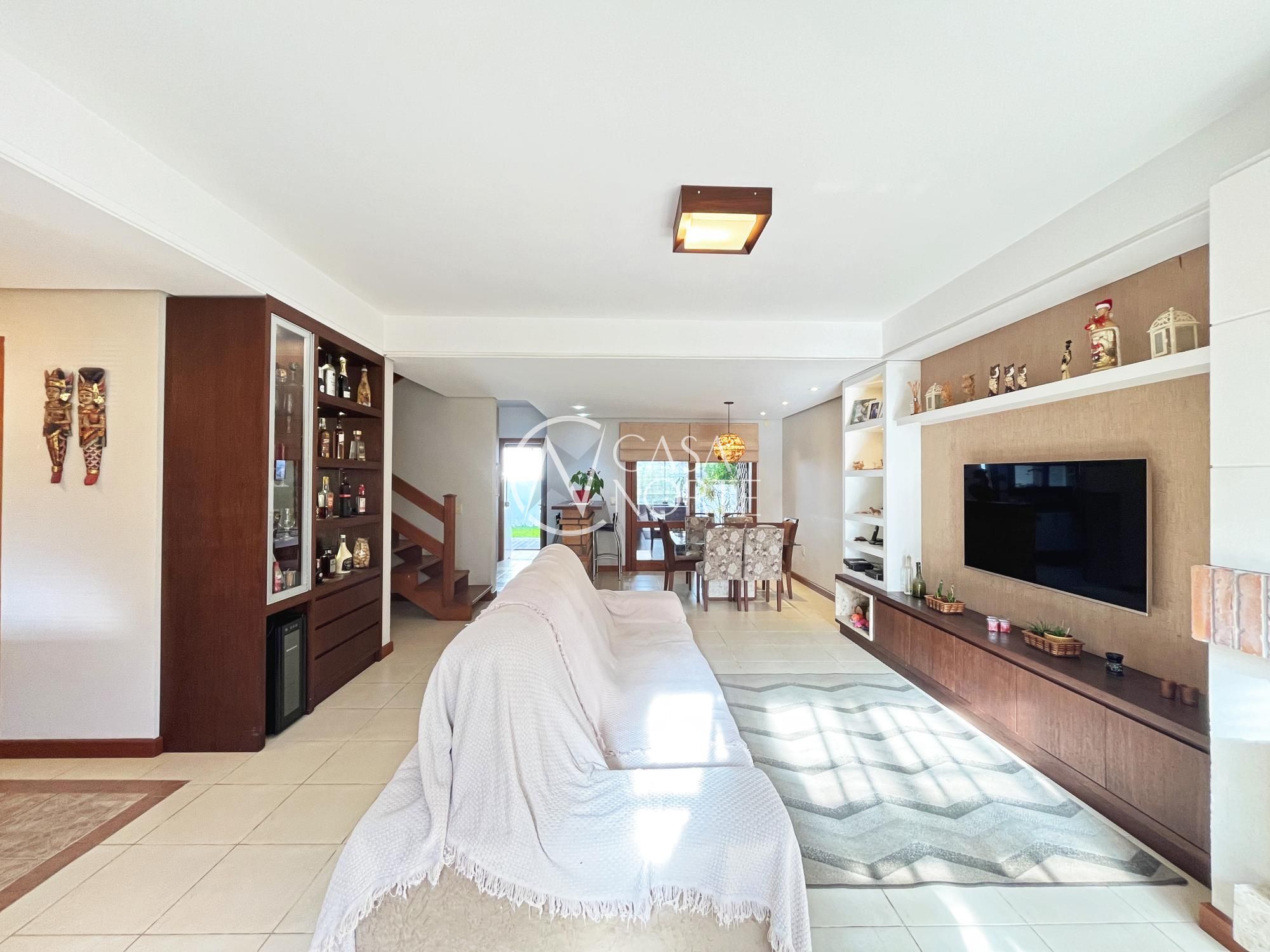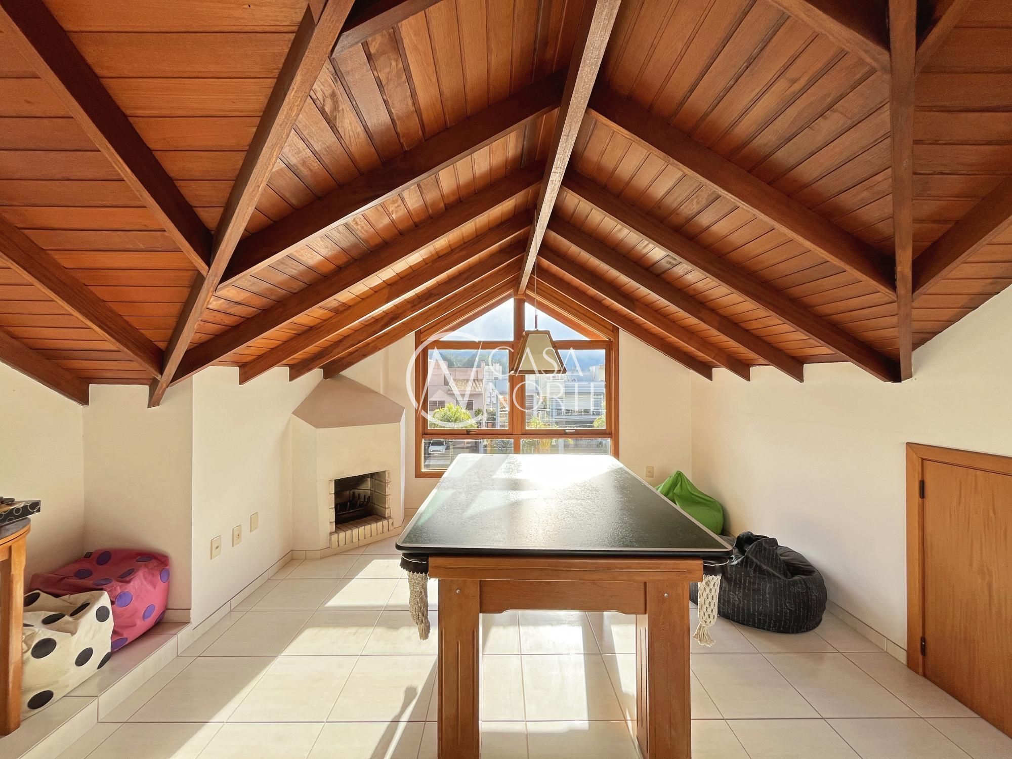 Excelente sobrado com 3 dormitórios (suíte master com closet), living amplo com lareira, sala de jantar e cozinha integrada semi mobiliada. Possui varanda gourmet fechada com churrasqueira, sótão com lareira e terraço (opção de 4º dormitório ou home office), lavanderia fechada e jardim com pergolado.
