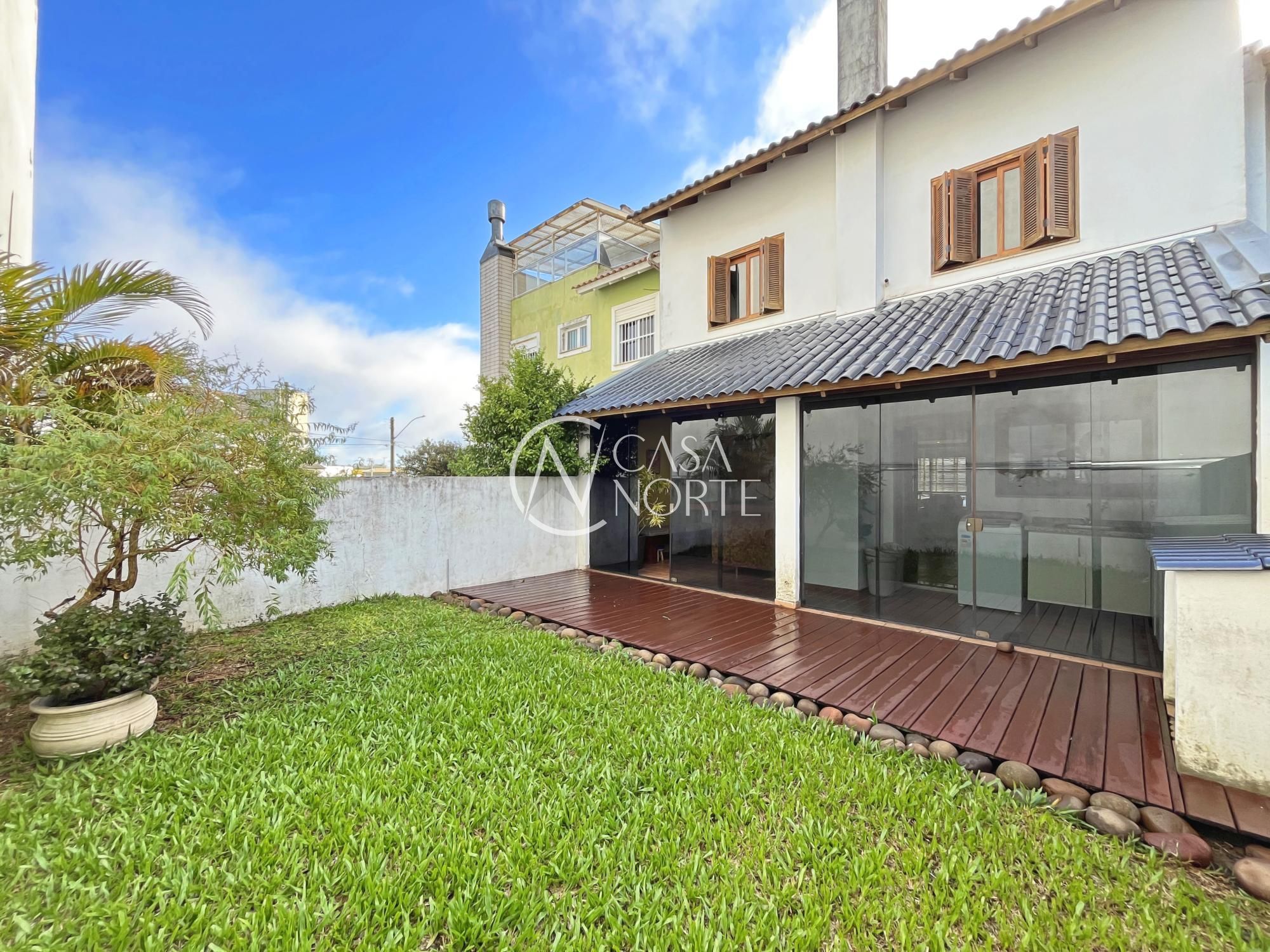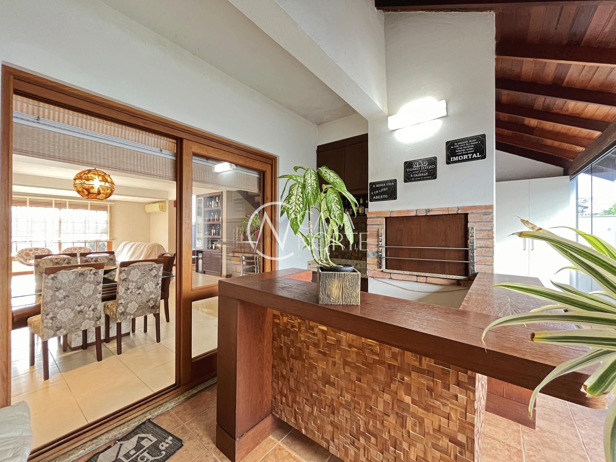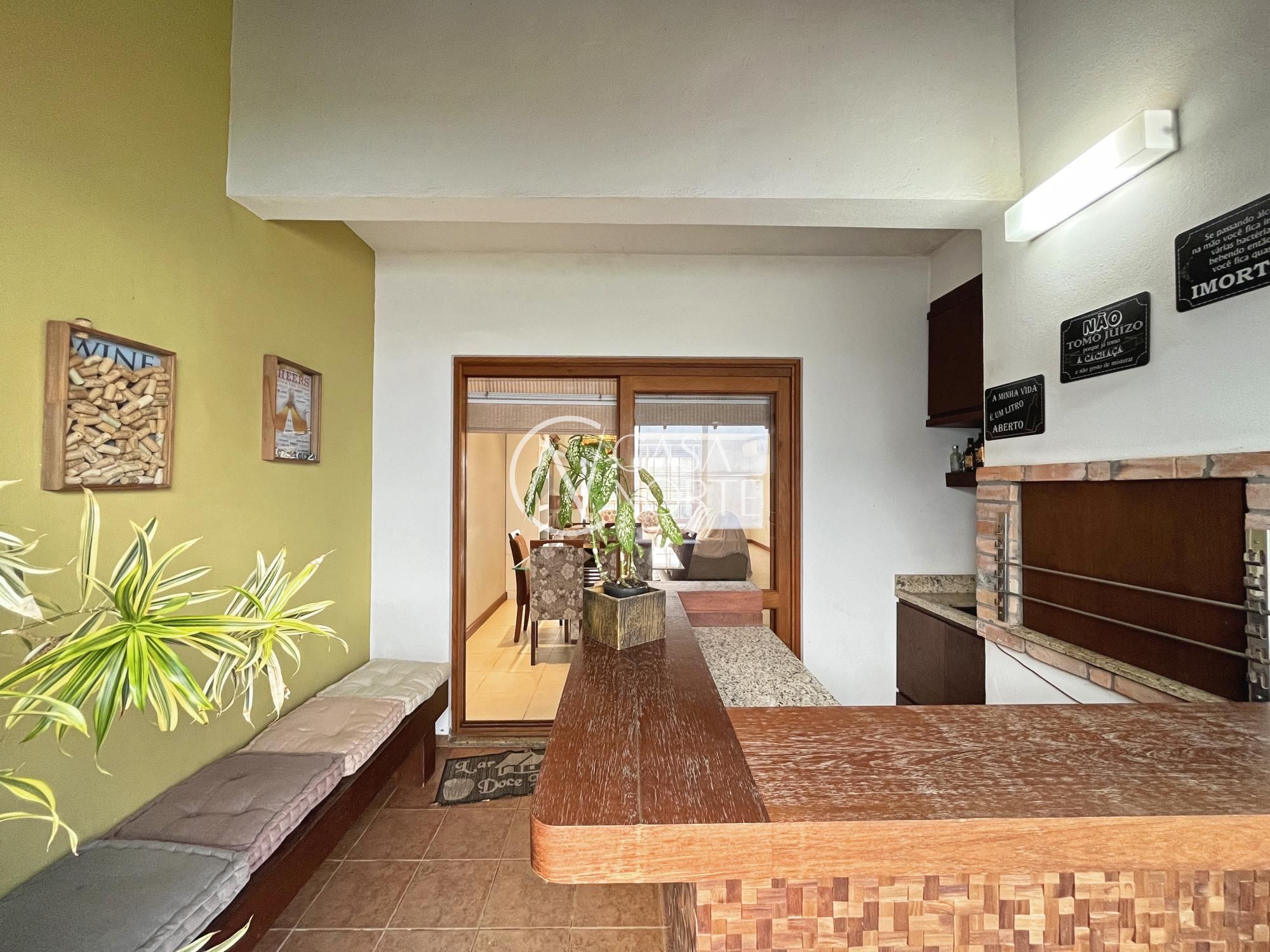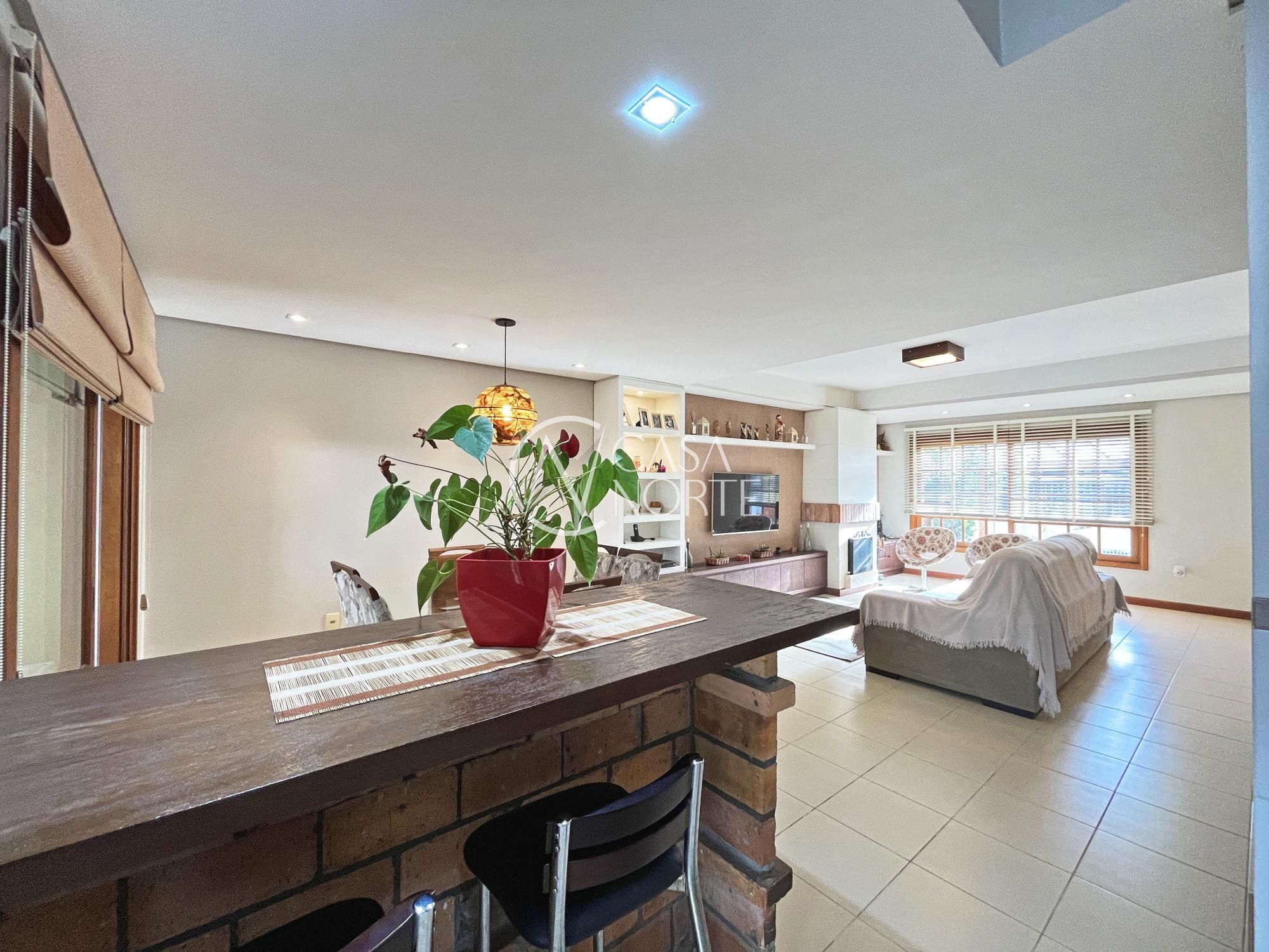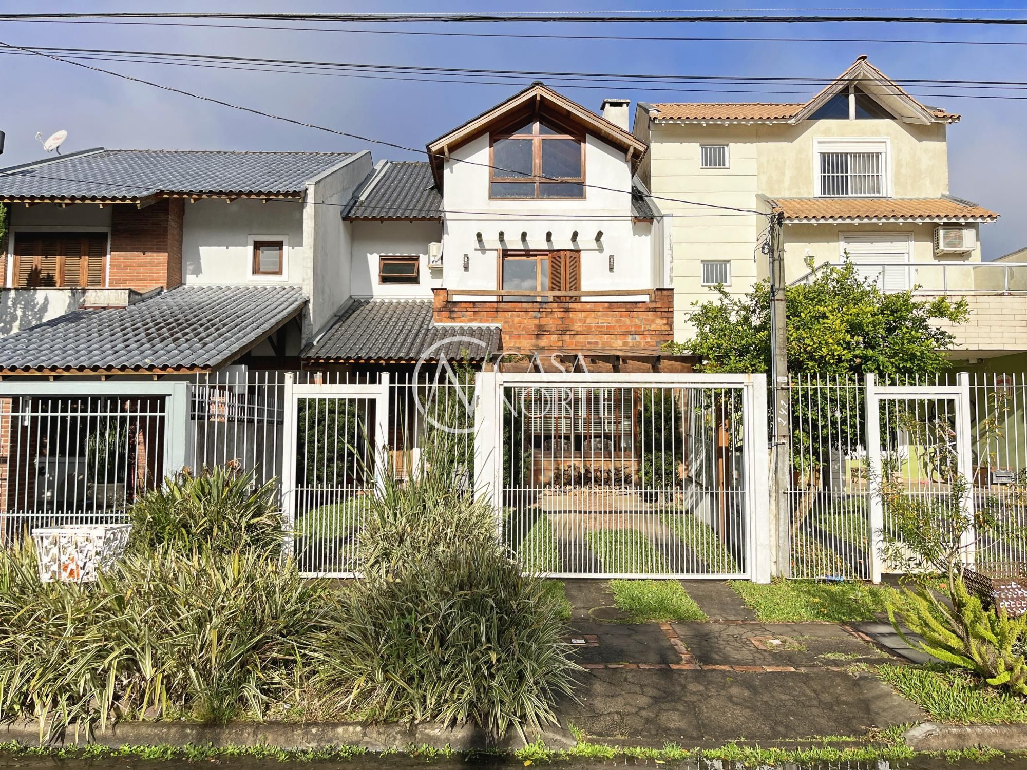 Excelente sobrado com 3 dormitórios (suíte master com closet), living amplo com lareira, sala de jantar e cozinha integrada semi mobiliada. Possui varanda gourmet fechada com churrasqueira, sótão com lareira e terraço (opção de 4º dormitório ou home office), lavanderia fechada e jardim com pergolado.